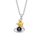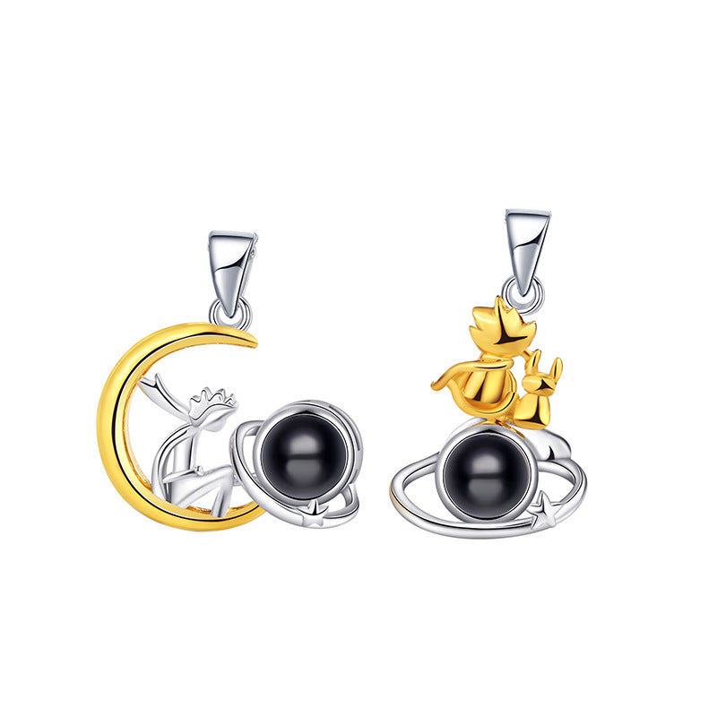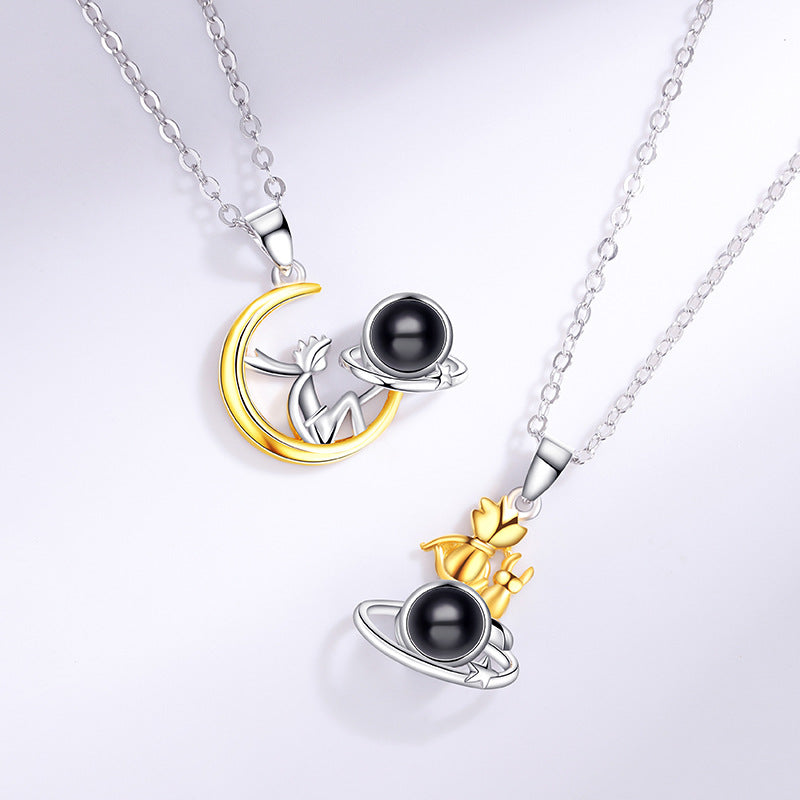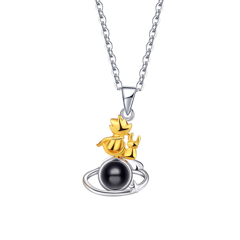 Little Prince in Space and Fox Projection Necklace Couple with Picture Inside