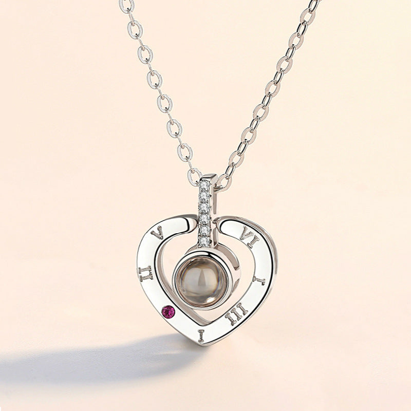 This s925 sterling silver necklace features a heart-shaped pendant with a unique picture insert, making it a truly special accessory. The heart-shaped design and quality material make this a timeless piece you'll cherish for years.