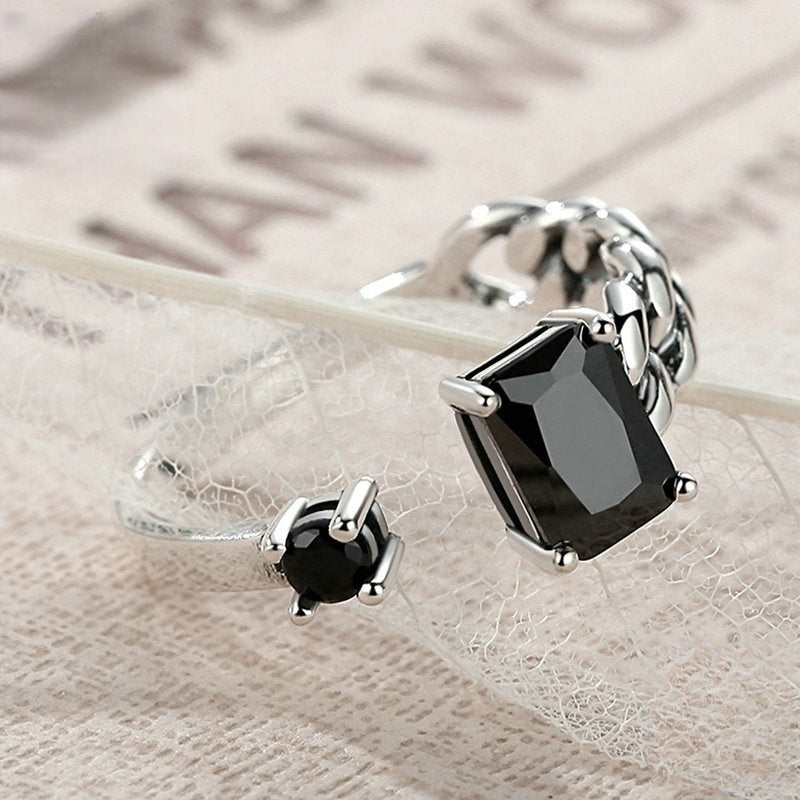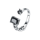 S925 Sterling Silver Black Square Diamond Toi et Moi Ring