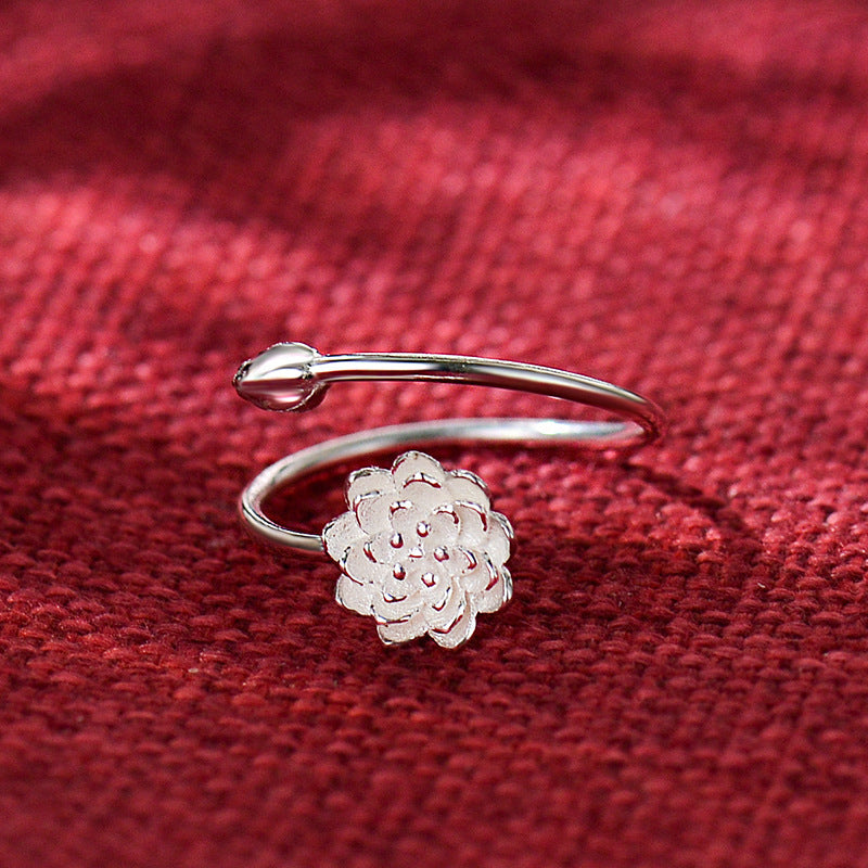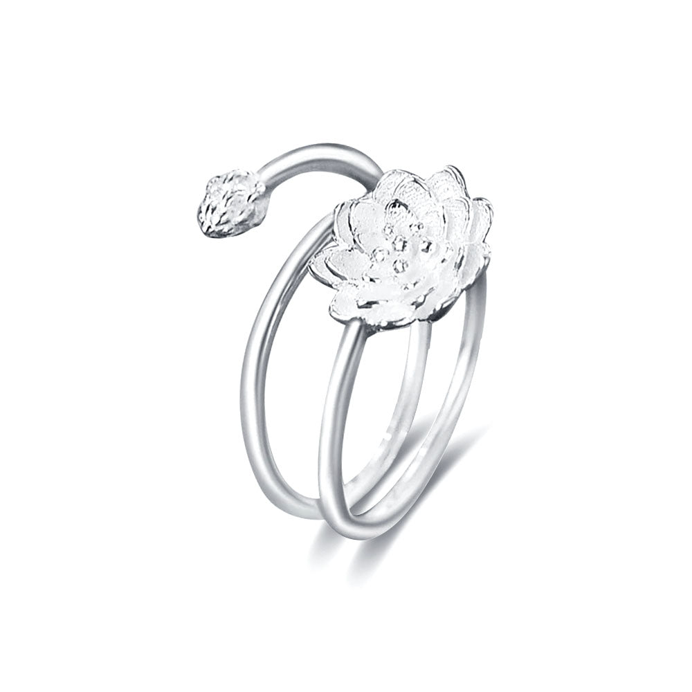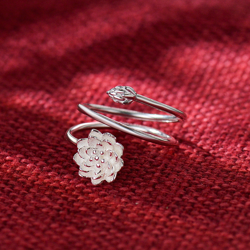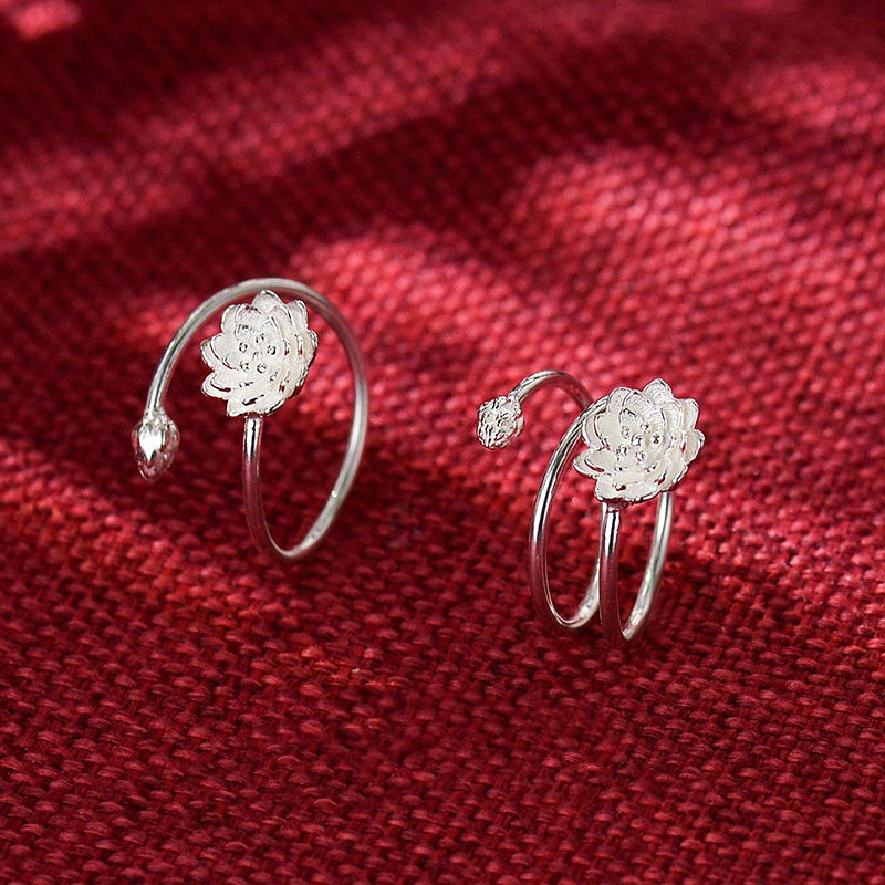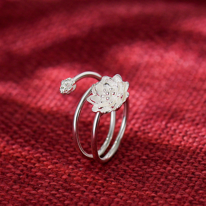 Toi et Moi Ring with Lotus Flower in Sterling Silver