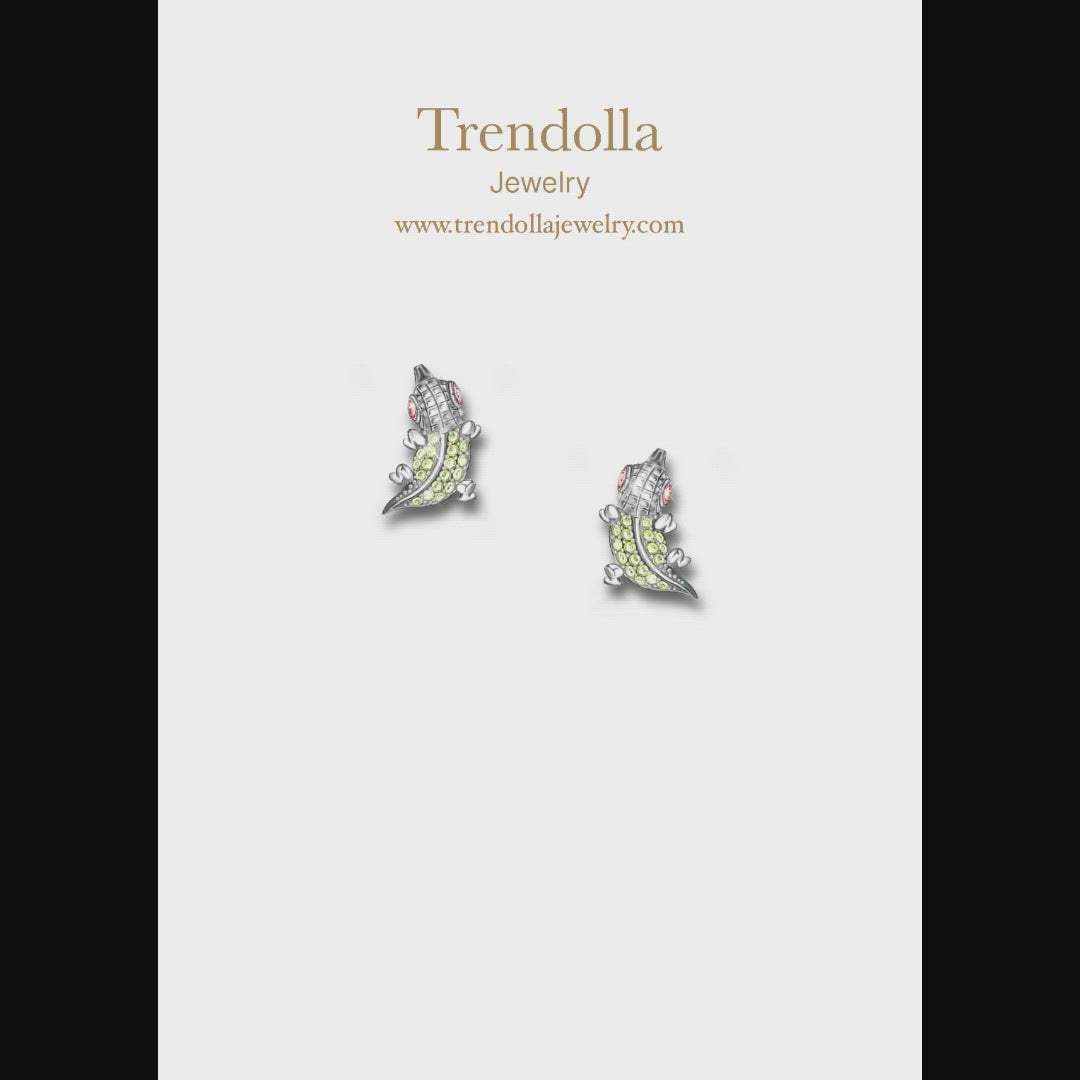 أقراط سحلية مع أحجار الراين. عظيم لأي محب للحيوانات ، هدية لطيفة لصديق. مصنوعة من الفضة الإسترليني ، أقراط مرصعة بأحجار بيضاء متلألئة مثل الجلد ومزينة بأحجار أصغر لإضافة بريق. إذا كنت مهتمًا بمجوهرات السحلية ، أضف هذا الخاتم إلى صندوق المجوهرات الخاص بك.