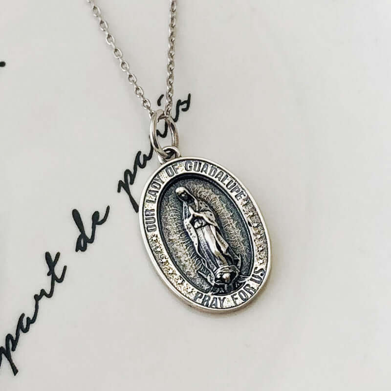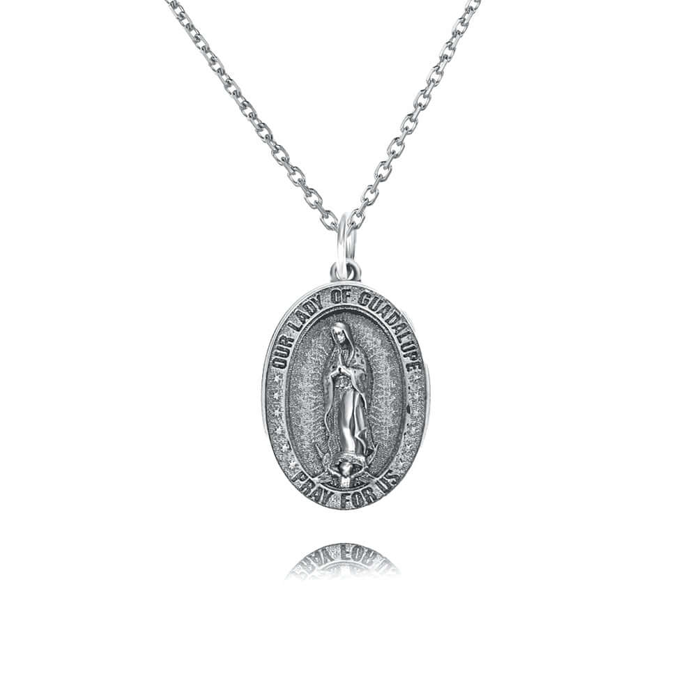 The Virgin Mary Virgencita Necklace is displayed with beautiful attention to detail. The pendant has a beautifully designed texture that makes the image come out and has everything you would want in a Virgin Mary Virgencita Necklace. Make a statement and show your devotion with this virgencita necklace! It is a great gift and a personal keepsake.