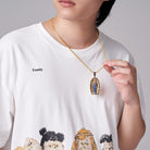 The Virgin Mary Virgencita Necklace is displayed with beautiful attention to detail. The pendant has a beautifully designed texture that makes the image come out and has everything you would want in a Virgin Mary Virgencita Necklace. Make a statement and show your devotion with this virgencita necklace! It is a great gift and a personal keepsake.