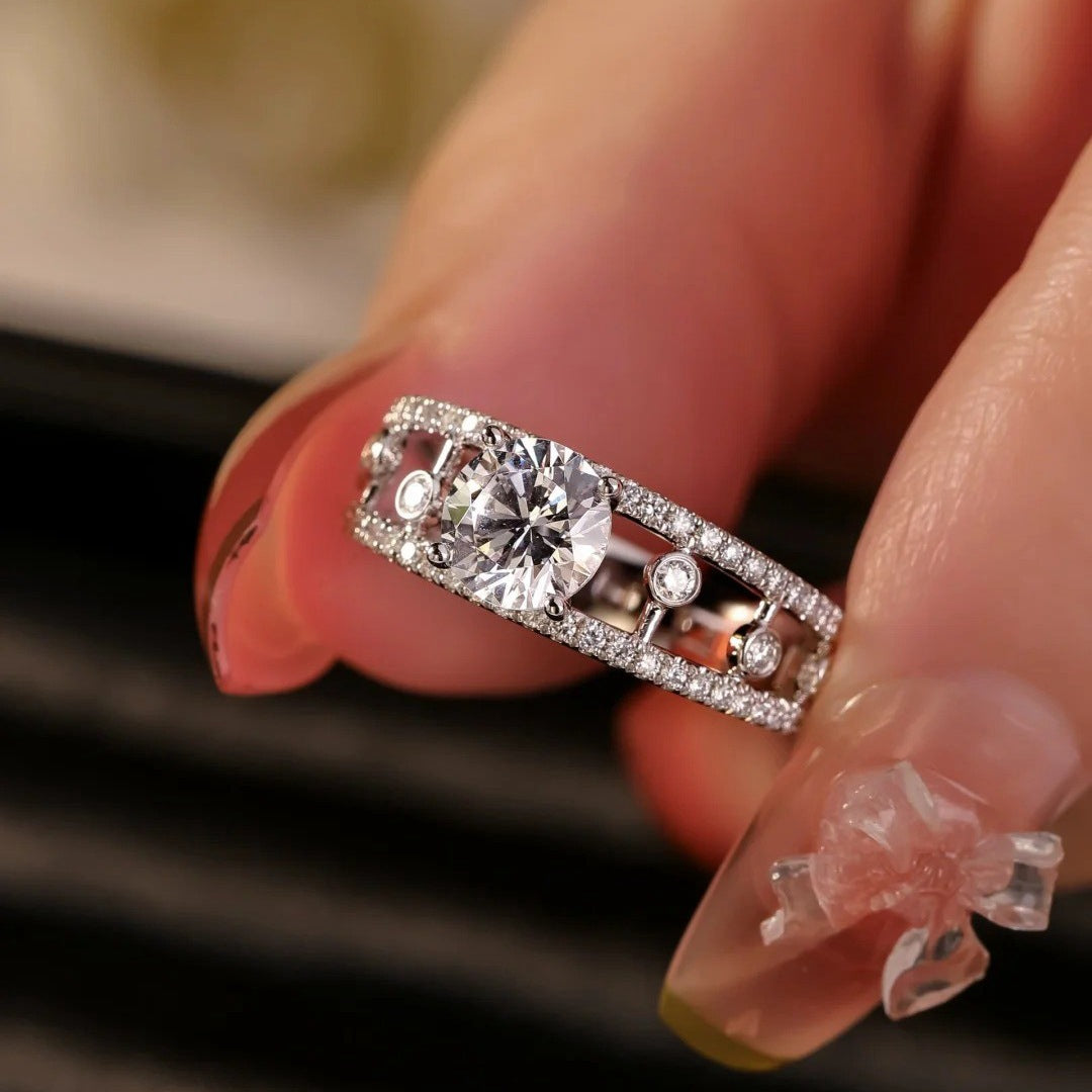 925 Silver Single Hollow Moissanite Ring