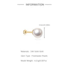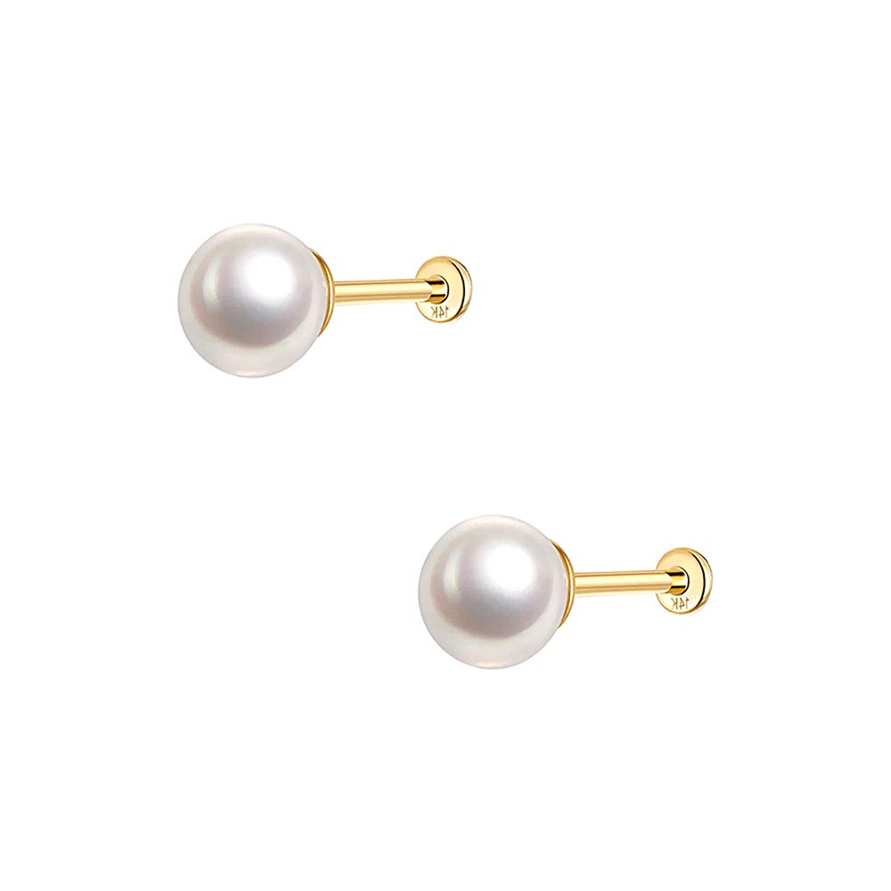 14k Gold Single Large Pearl Gold Flat Back Earrings