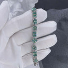Tvarovaný čtvercový srdce smaragdový ovální stříbrný tenisový náramek