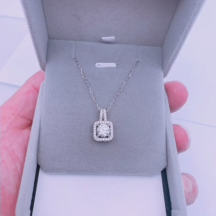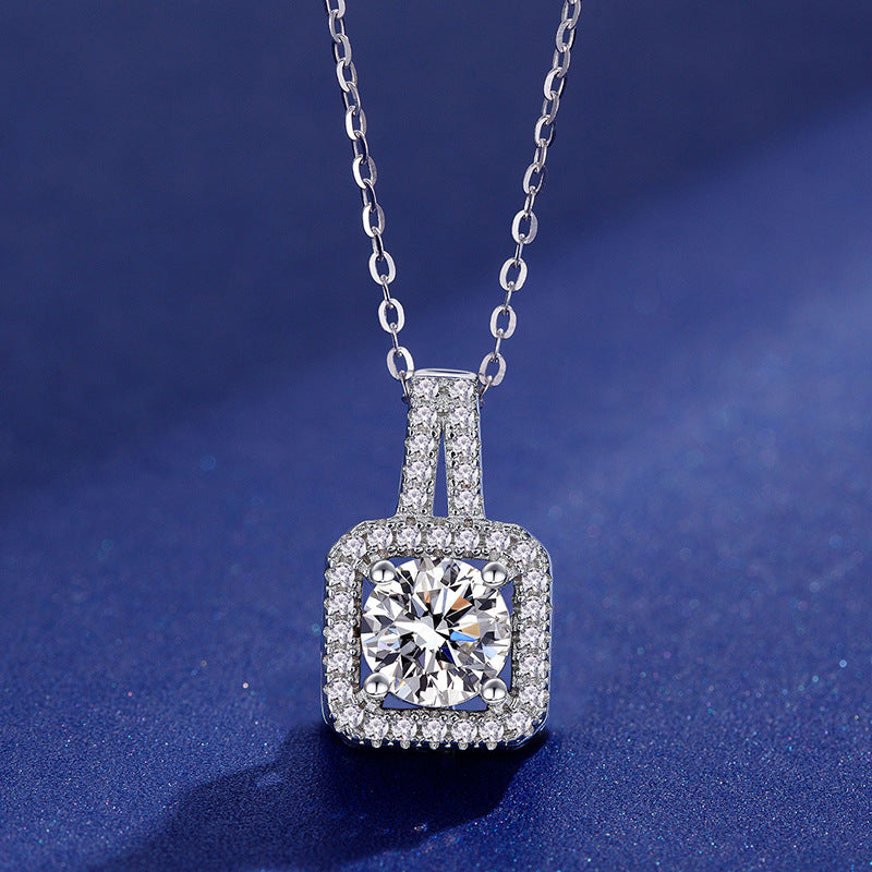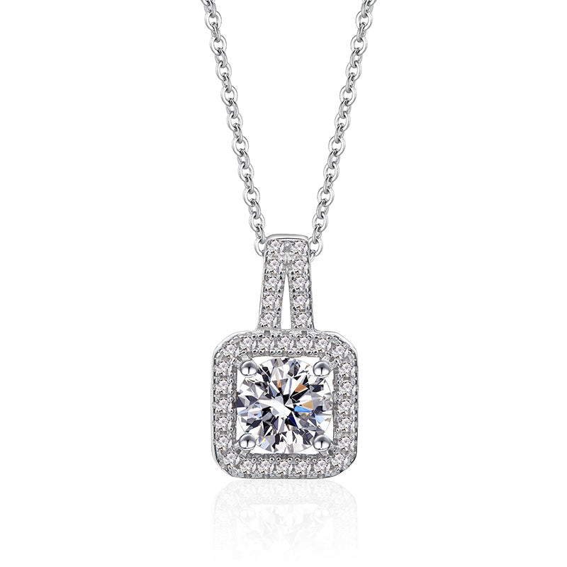 Stříbrný moissanite princezna náměstí balel náhrdelník