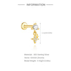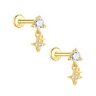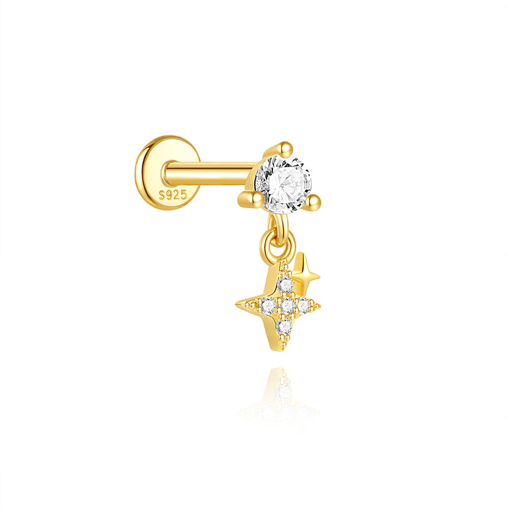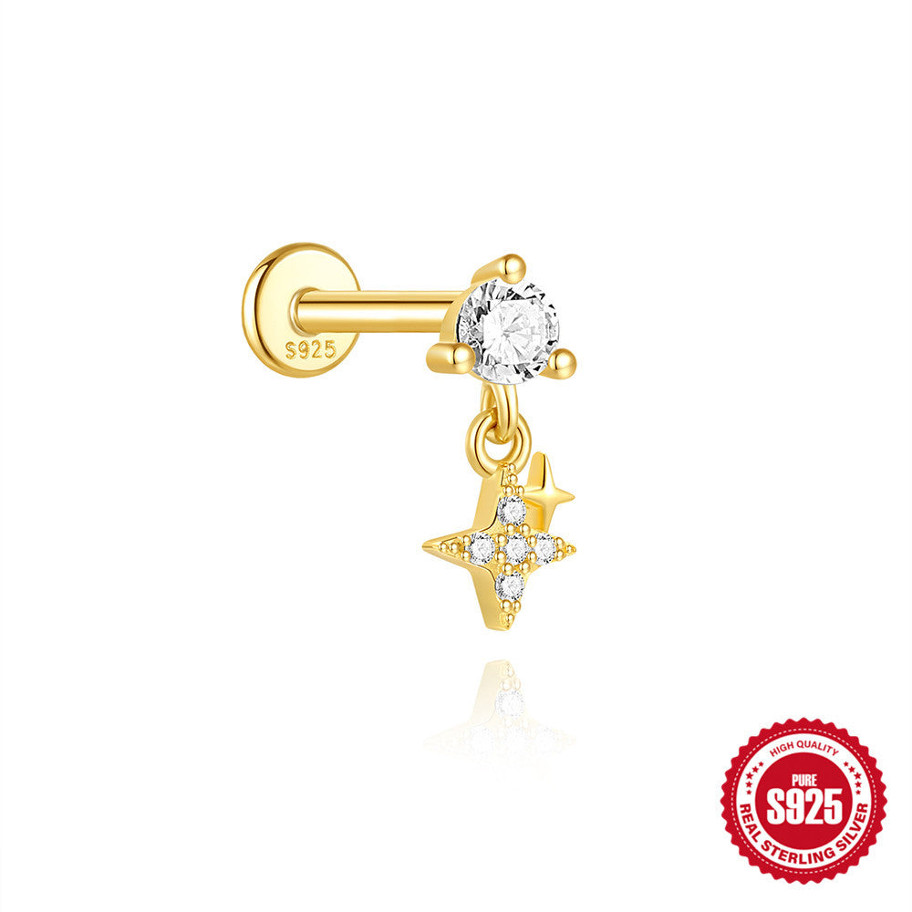 Double Star Dangle Flat Back Earring S925 Sterling Silver Zircon Cartilage Jewelry