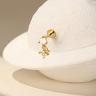 Elevate your cartilage piercing with this sophisticated double star dangle earring, crafted from premium S925 sterling silver. Each star features brilliant cubic zirconia stones that catch light beautifully, delivering luxury sparkle at an accessible price point. The flat back design ensures comfortable, secure wear throughout the day—ideal for sensitive piercings or those seeking stability during healing. Versatile enough for everyday elegance or special occasions, this piece combines contemporary design with timeless appeal. Perfect for curating a refined ear stack or wearing as a standalone statement.