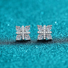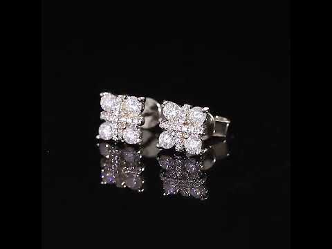 Cubic Flower Moissanite Stud Earrings in Sterling Silver