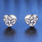 These Four Claw Heart Moissanite Stud Earrings feature a timeless design that will sparkle for generations. Crafted with four claws, this setting ensures maximum durability and brilliance while the heart cut enhances the fiery luster of the Moissanite. Perfect as a gift.