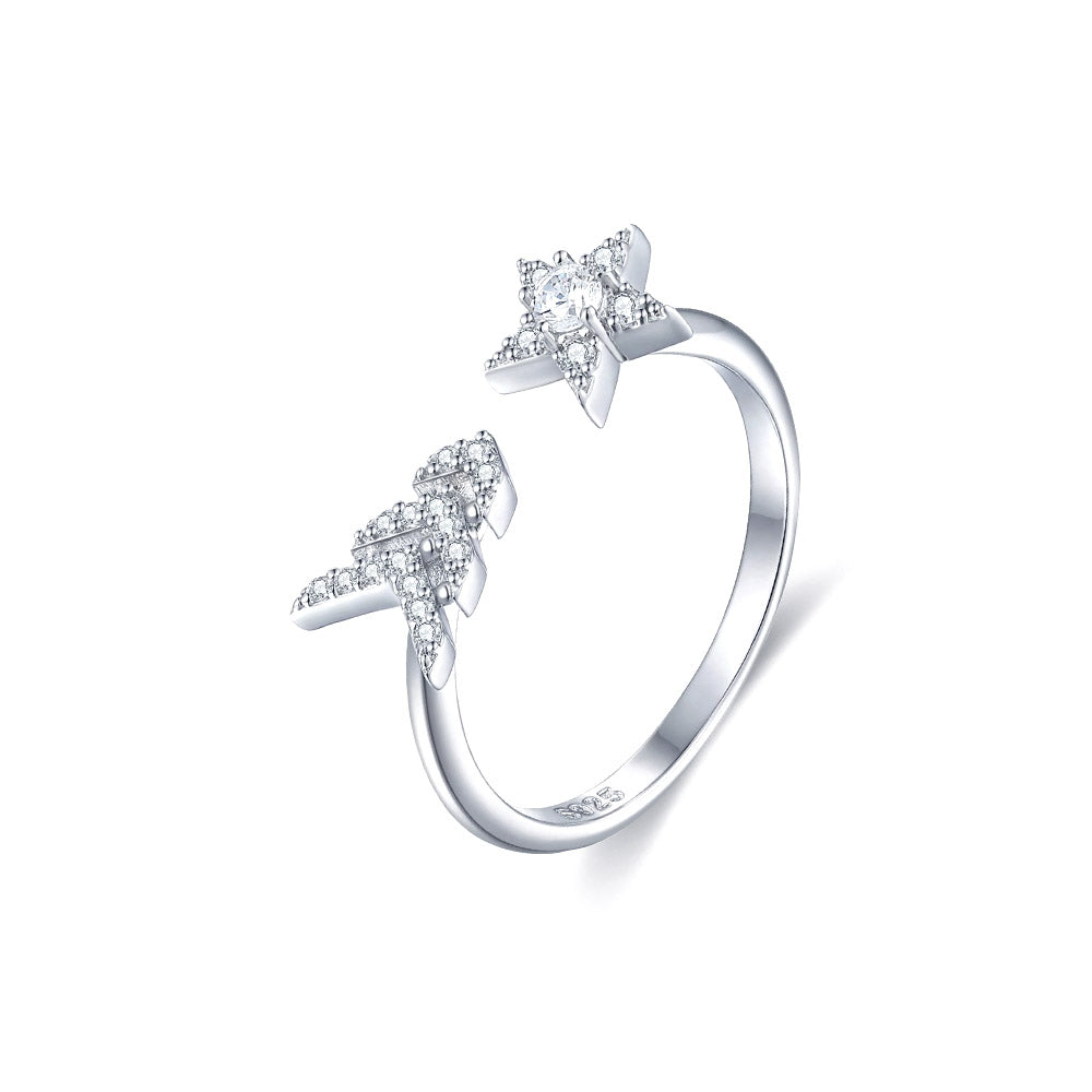 "Make a celestial statement with our S925 Silver Star Toi et Moi Ring! Crafted with genuine silver, this ring brings a touch of magic to any outfit. With two shimmering stars coming together, it symbolizes the connection of two souls. Perfect for making a playful yet meaningful statement!"