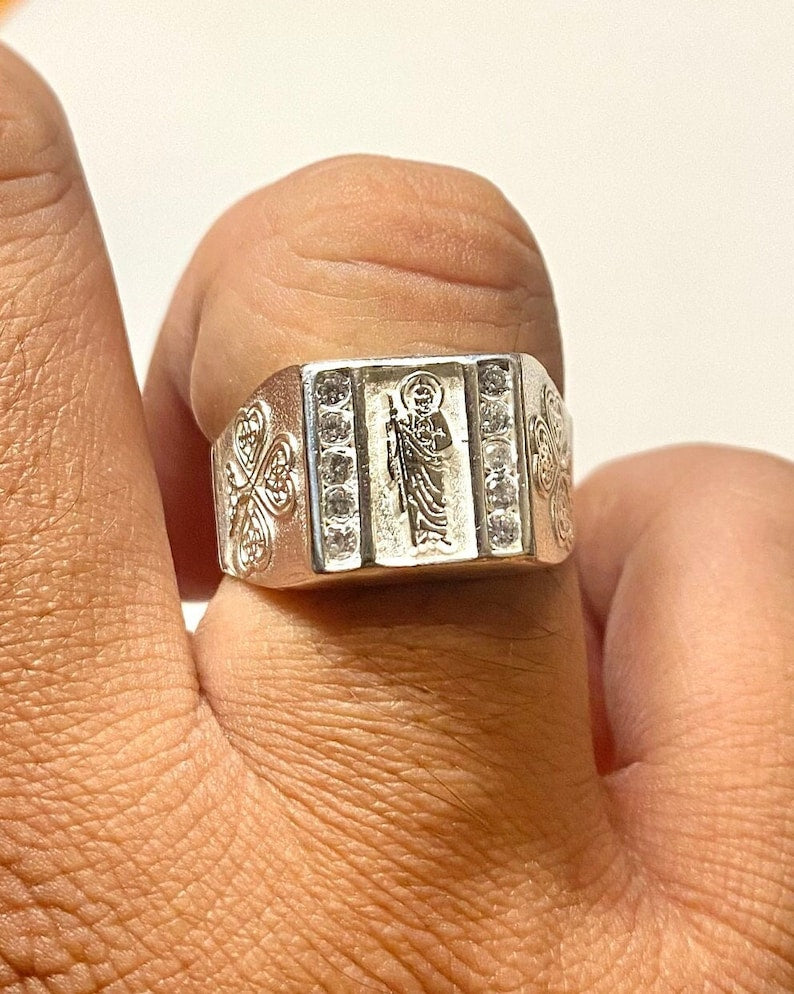 Silver 925 CZ San Judas Tadeo Ring