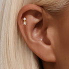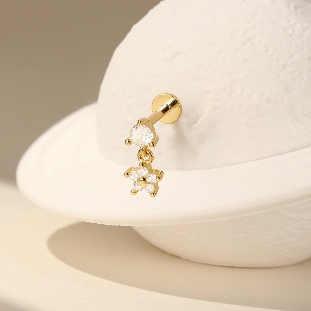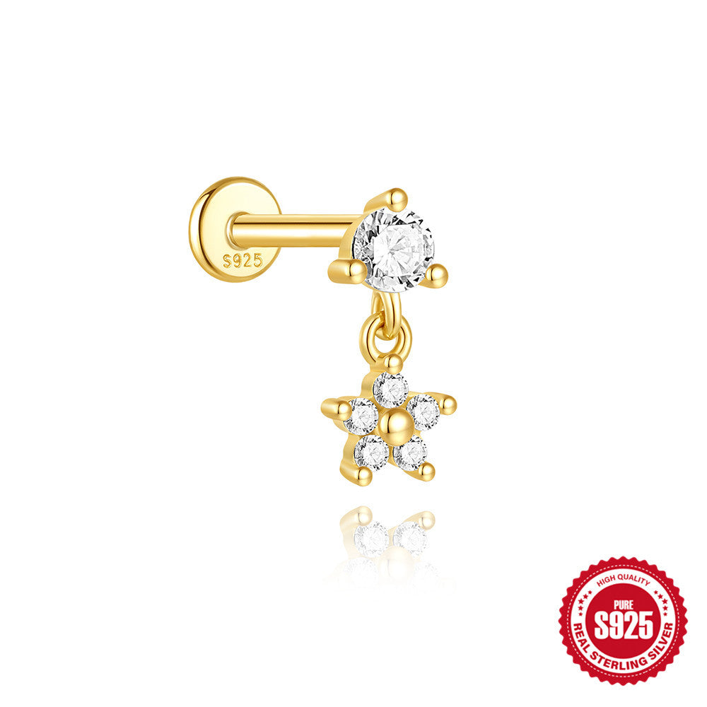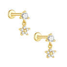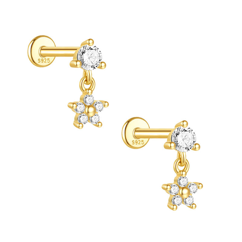 Star Dangle Flat Back Earrings 925 Sterling Silver Gold Plated Cartilage Jewelry