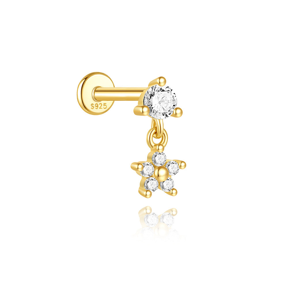 Discover understated elegance with this star dangle flat back earring, featuring 925 sterling silver enhanced with luxurious gold plating. The warm metallic finish complements all skin tones while the delicate star pendant adds refined movement and dimension. Engineered with a secure flat back post, this design prioritizes comfort for cartilage piercings and extended wear. The durable gold plating resists tarnishing, maintaining its lustrous appearance through daily use. Whether layered within an ear stack or worn individually, this versatile piece transitions seamlessly from casual to formal settings, making it an essential addition to any jewelry collection.