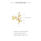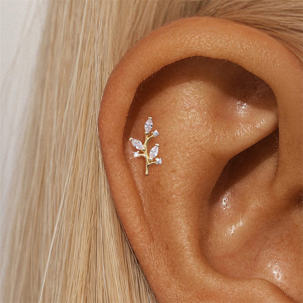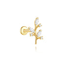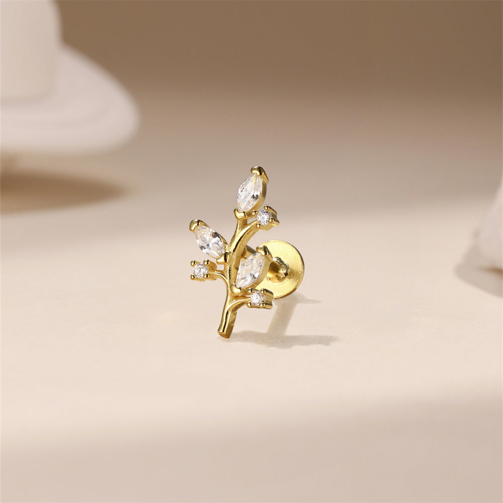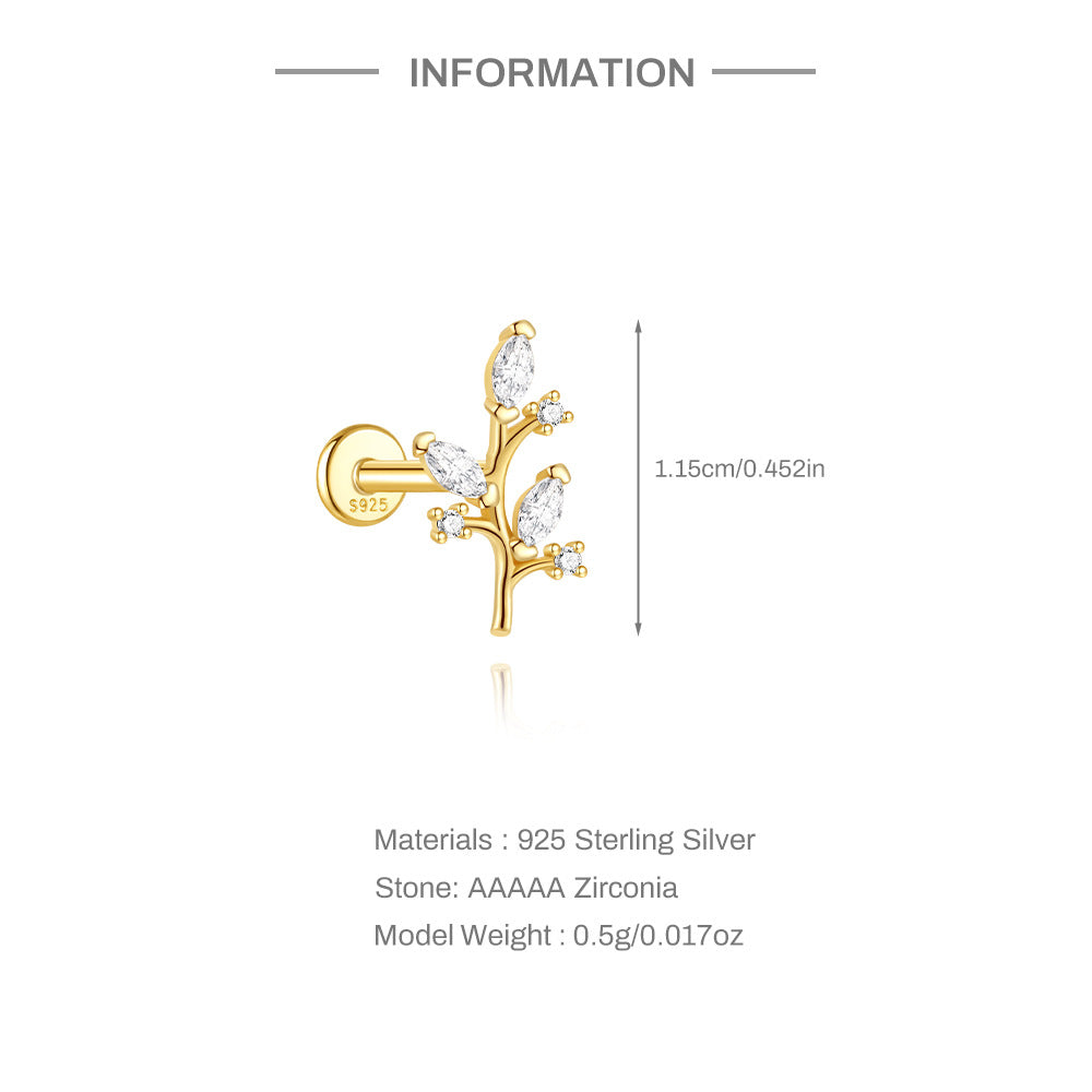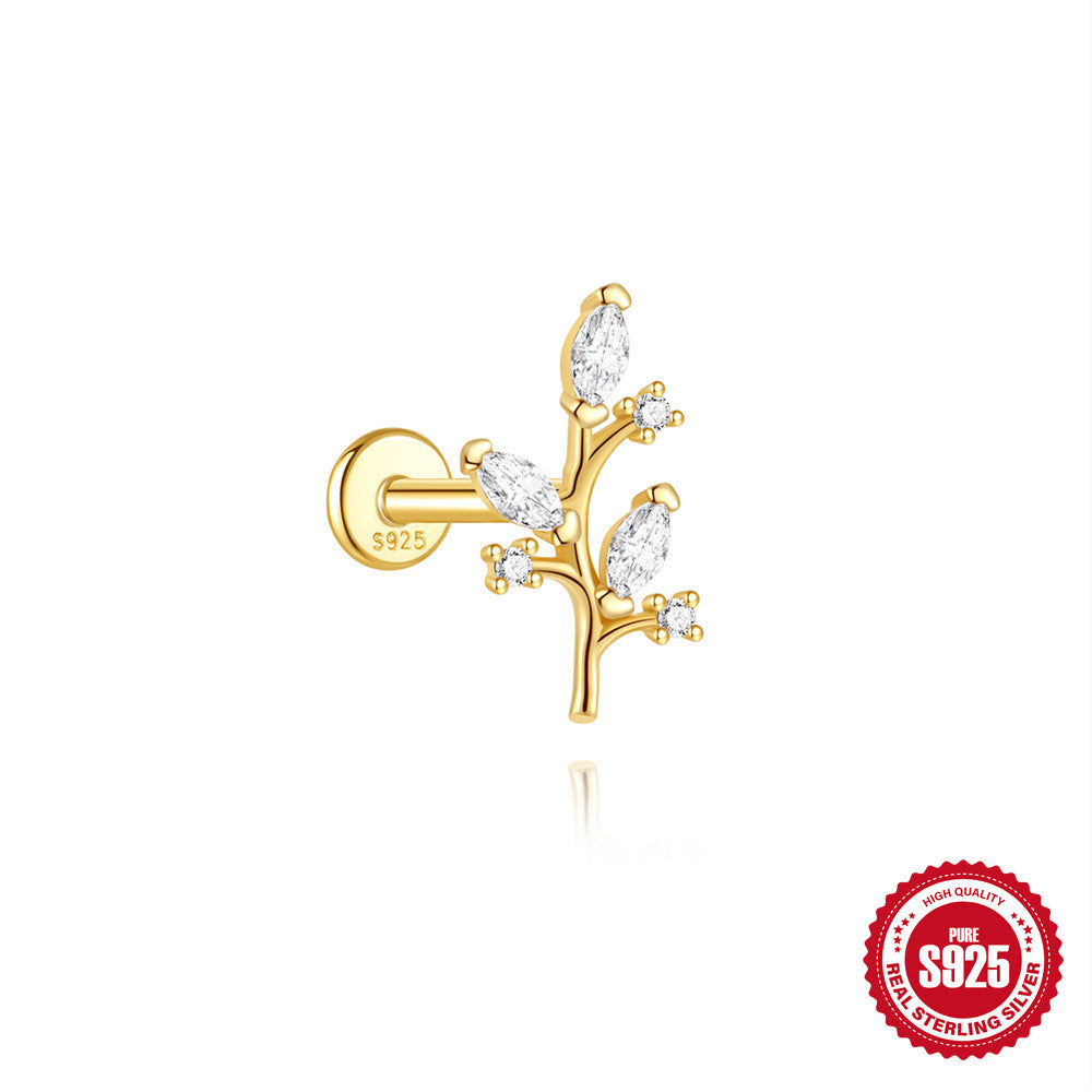 Zircon Leaf Branch Flat Back Earring S925 Sterling Silver Gold Nature Cartilage Jewelry