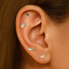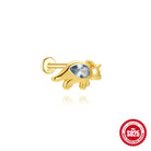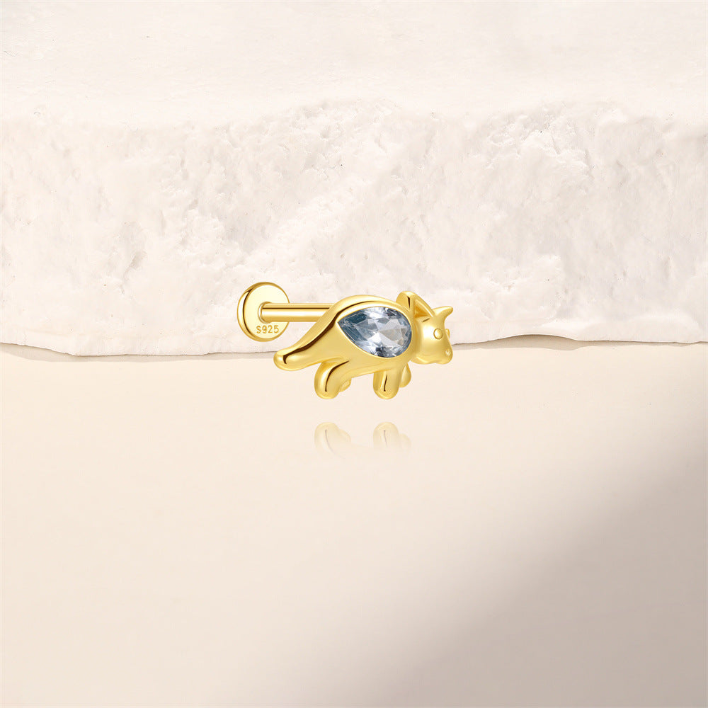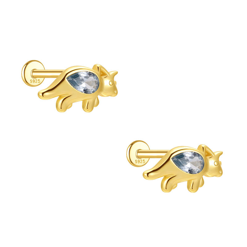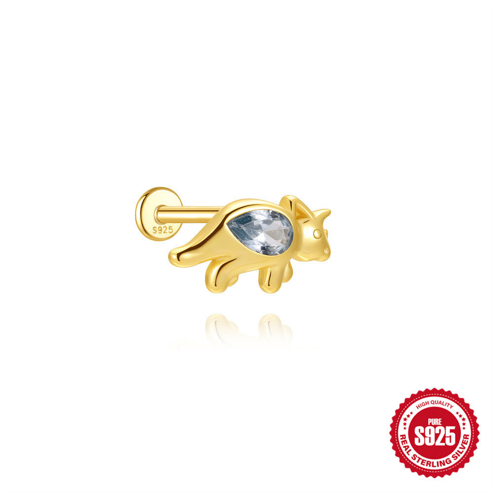 Gold Plated Dinosaur Flat Back Earrings S925 Sterling Silver Comfort Fit Cartilage Jewelry