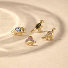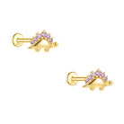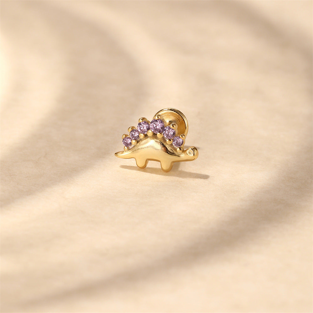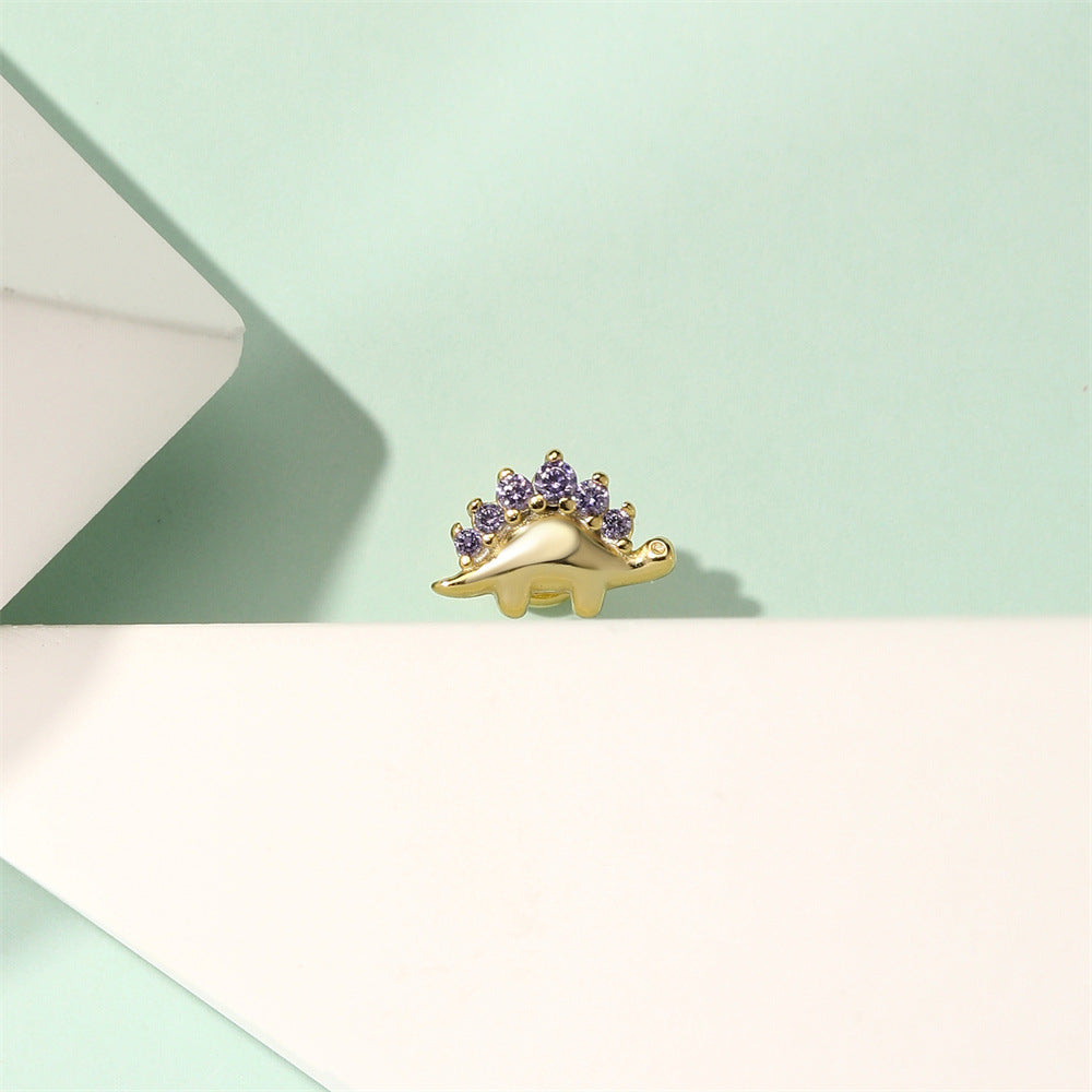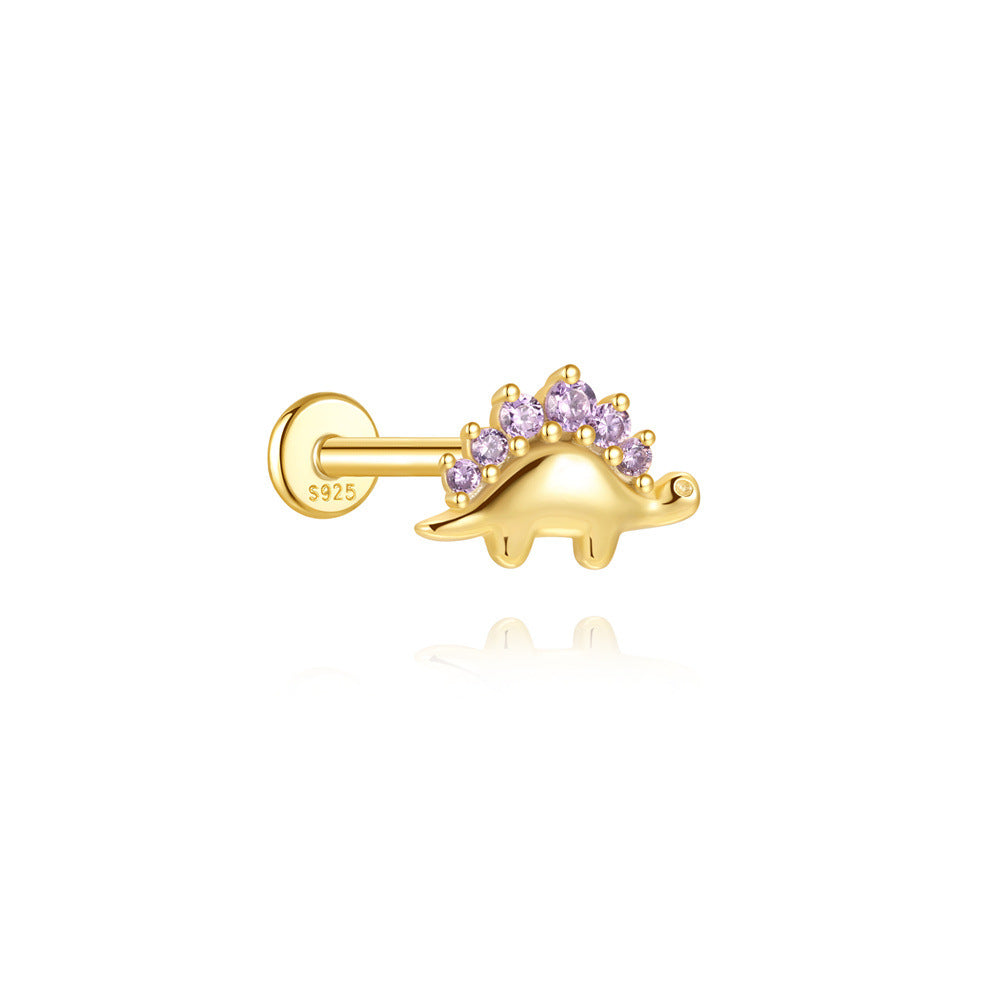 Purple Zircon Stegosaurus Flat Back Earrings 925 Sterling Silver Dinosaur Cartilage Jewelry