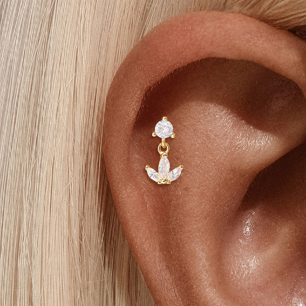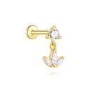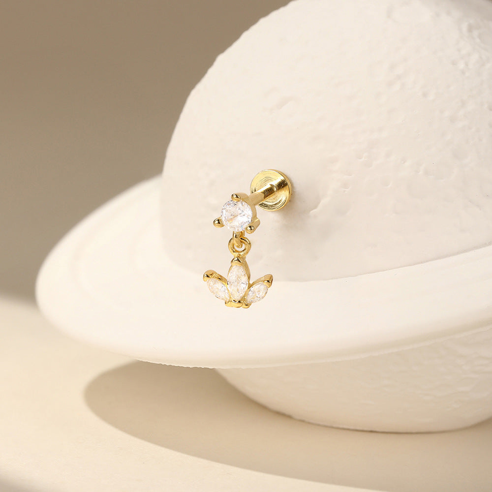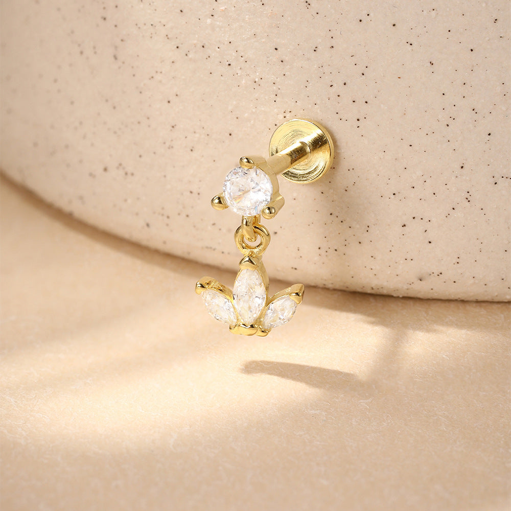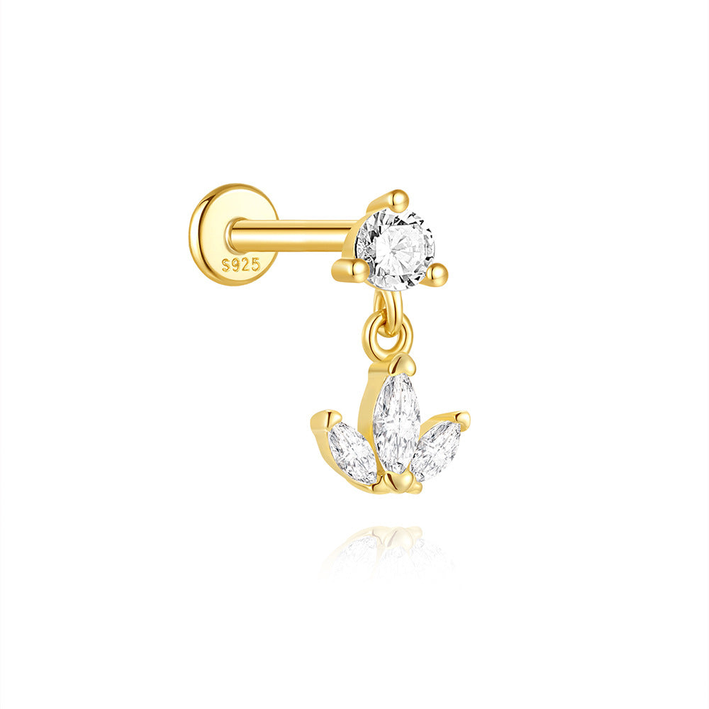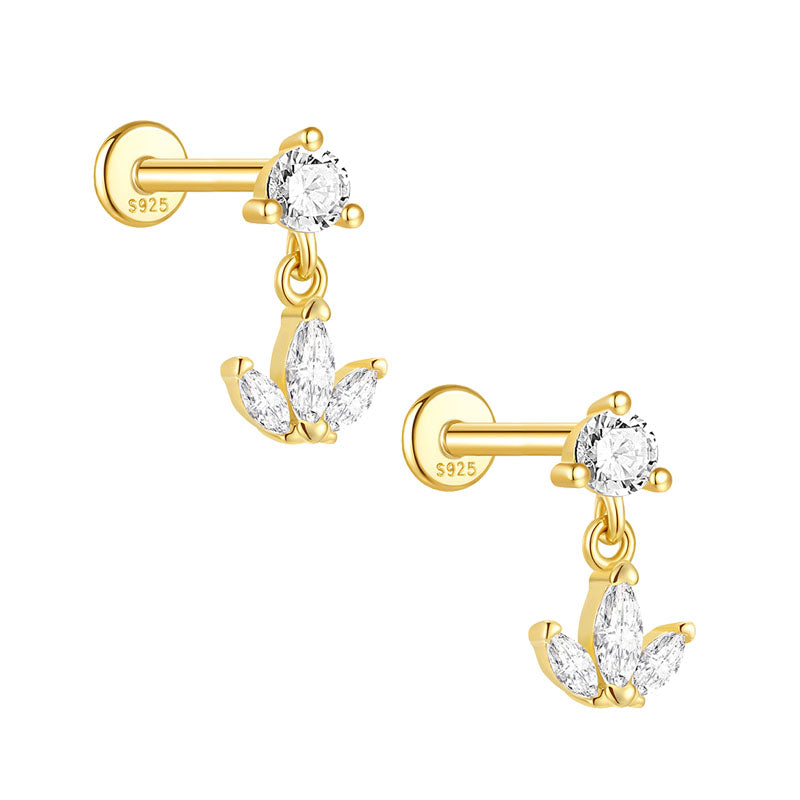 Petal Dangle Flat Back Earring S925 Sterling Silver Zircon Gold Cartilage Jewelry