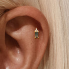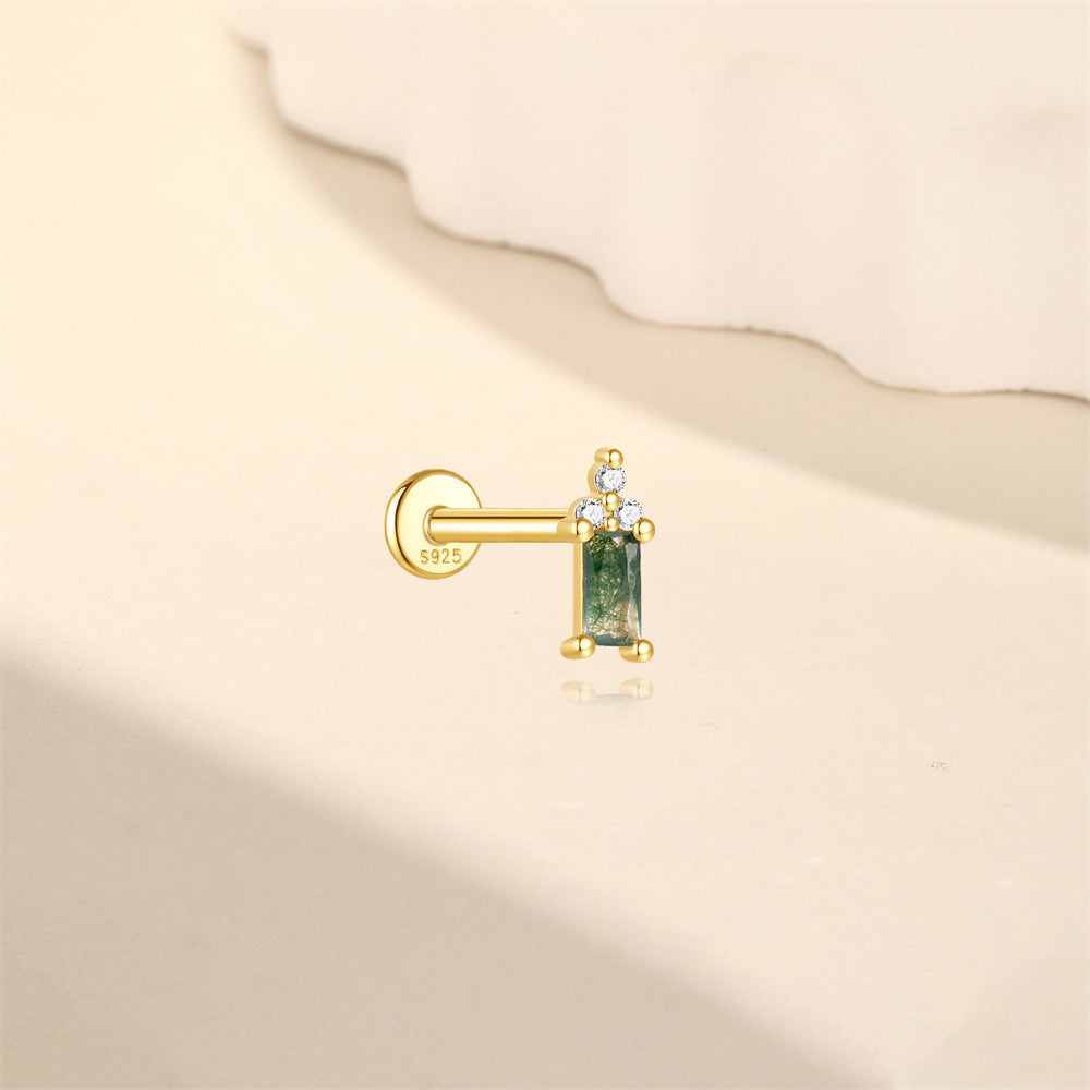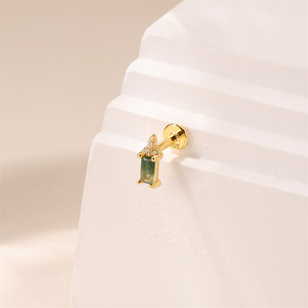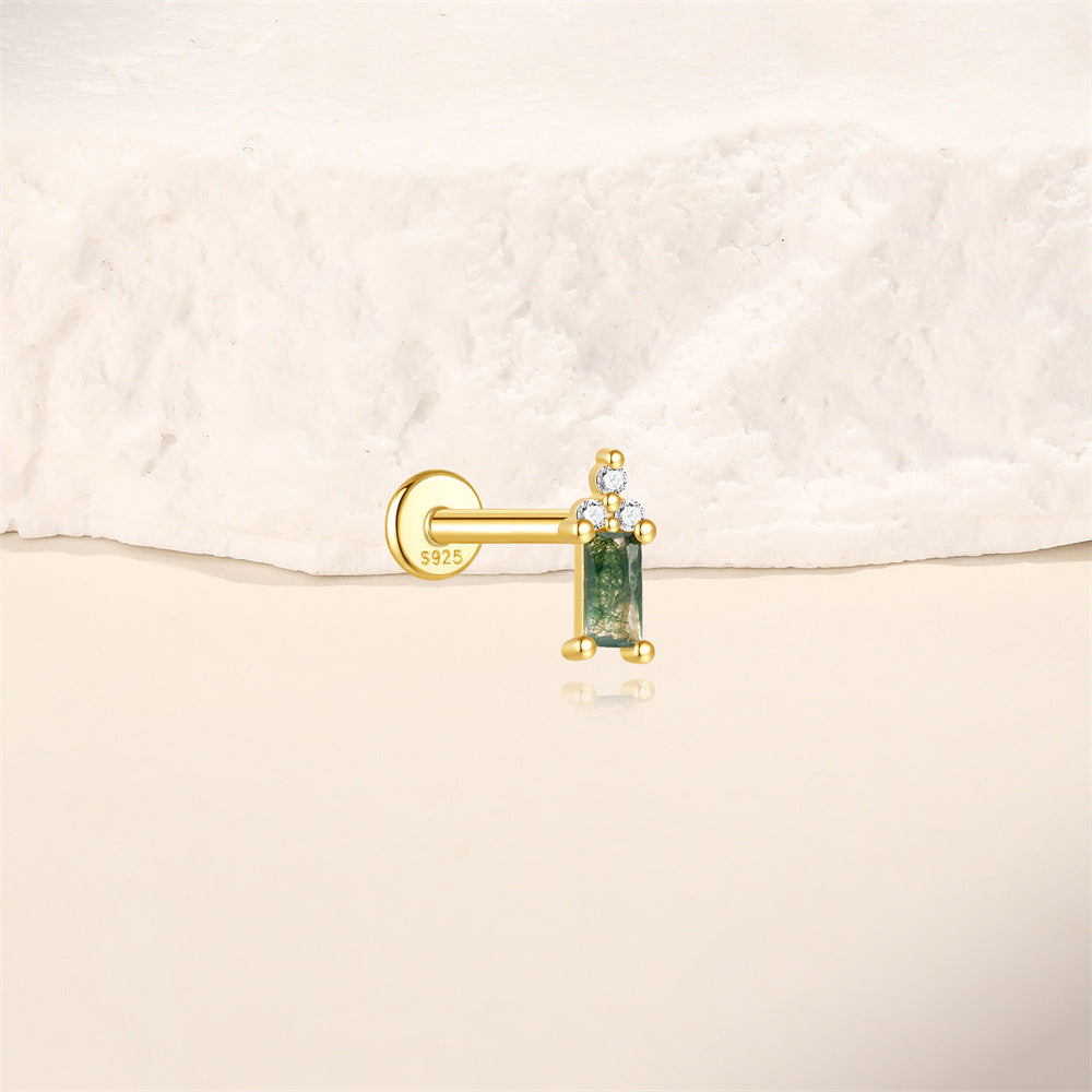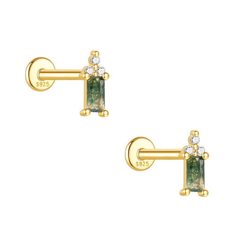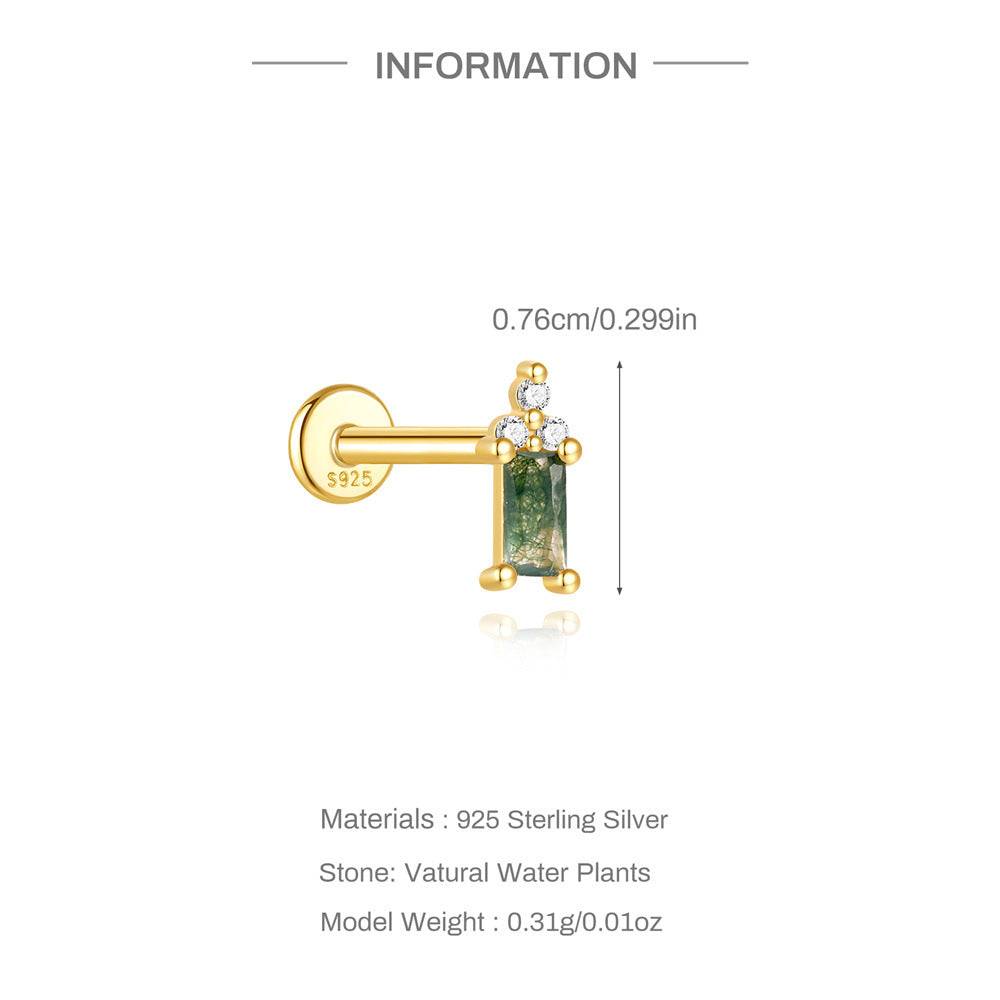 Lightweight Fresh Style Moss Agate Flat Back Earring S925 Gold Plated Sterling Silver Dainty Cartilage Earring