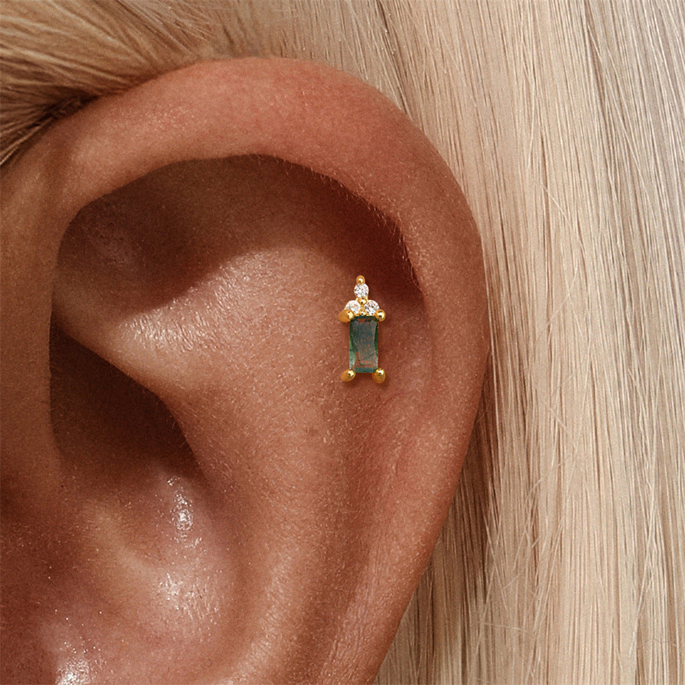 Elevate your ear styling with these sophisticated moss agate flat back earrings, crafted from S925 sterling silver with luxurious gold plating. The natural green moss agate stone brings organic elegance and earthy charm to any look, while the lightweight design ensures all-day comfort for sensitive ears. Perfect for cartilage piercings, these dainty studs offer versatile styling options—wear them solo for understated sophistication or layer them with other pieces for a curated aesthetic. The secure flat back closure provides stability and peace of mind, making these earrings ideal for both everyday wear and special occasions. A refined choice for those who appreciate quality craftsmanship and timeless gemstone jewelry.