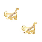 Pink Zircon Brachiosaurus Flat Back Earrings 925 Sterling Silver Dinosaur Cartilage Jewelry for Women