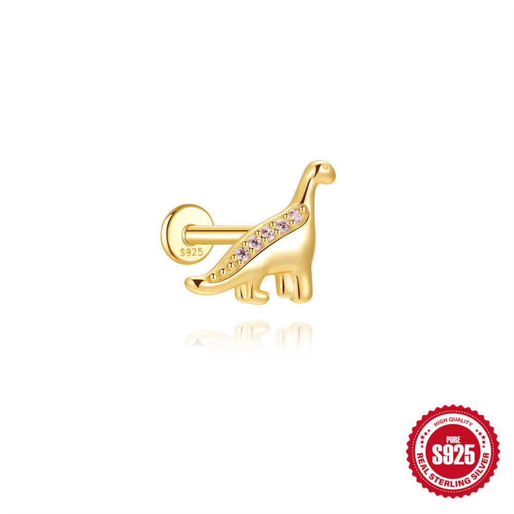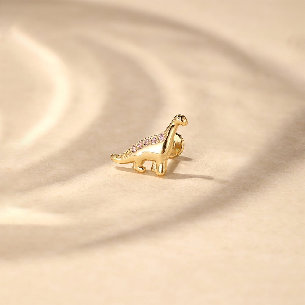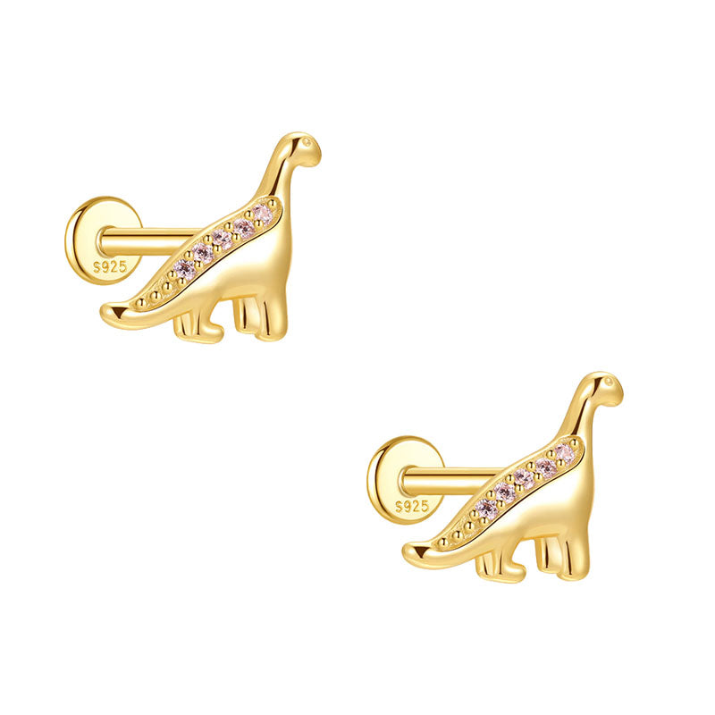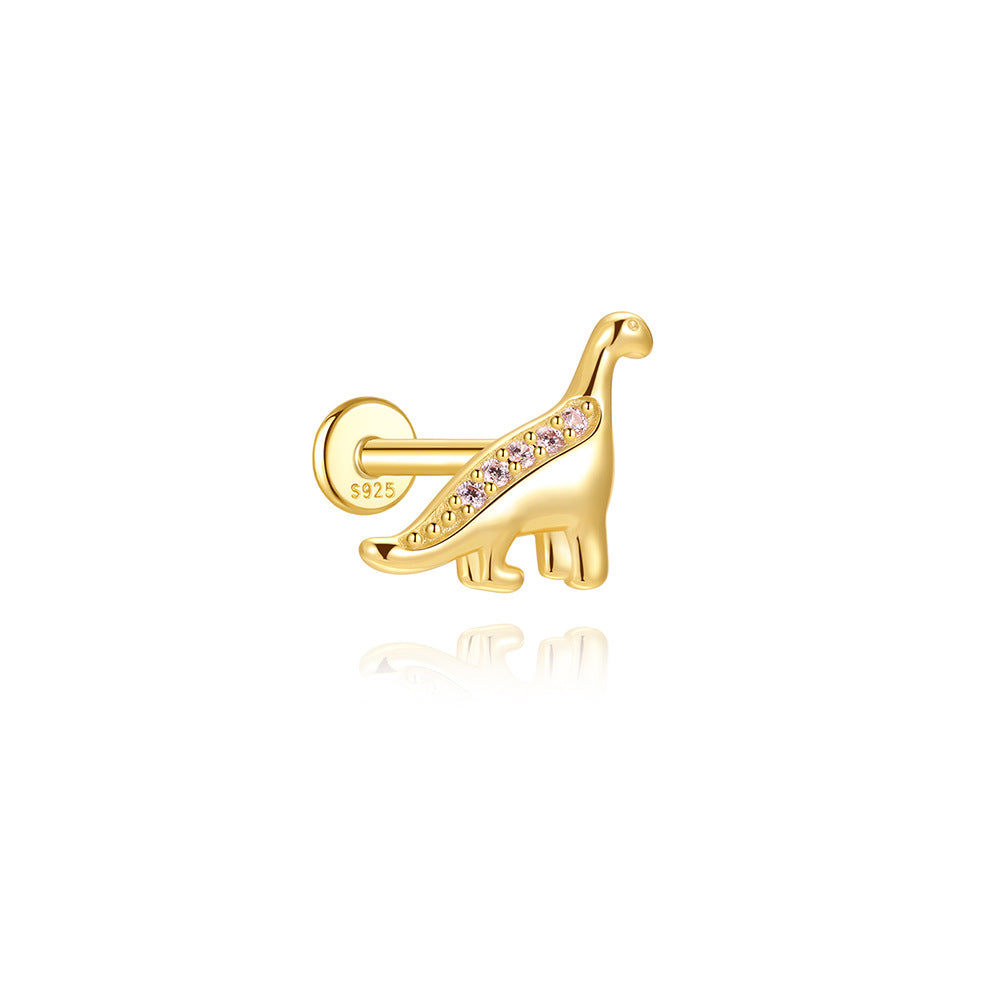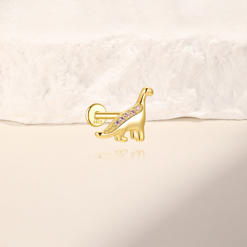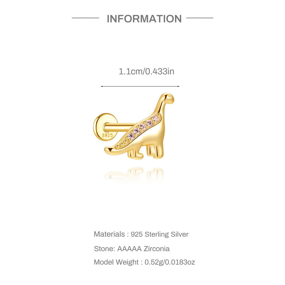 These charming brachiosaurus earrings combine playful design with refined craftsmanship. Crafted from 925 sterling silver, they feature sparkling pink zircon accents that catch the light beautifully. The flat back design makes them ideal for cartilage piercings, offering comfortable all-day wear. Perfect for dinosaur enthusiasts and jewelry lovers alike, these pieces bring a whimsical yet sophisticated touch to any collection. A unique statement accessory that celebrates individuality and timeless style.