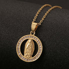 18K Gold Plated Virgin Mary Religious Sun Moon Virgencita Necklace