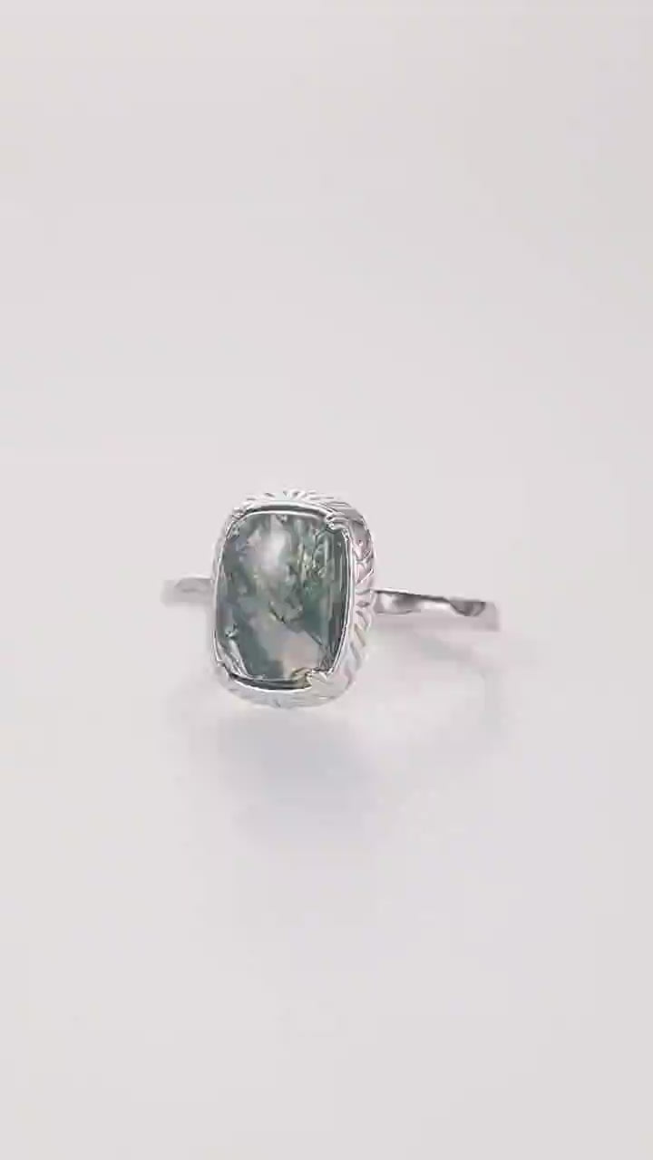 Moos agat ist eine Art Achat mit einer natürlich vorkommenden Textur, die Moosen ähnelt, die in einem Fluss teich schwimmen, anmutig und kurvenreich. Es kommt in grün, lila und gelb. Nutzen Sie die Kraft der Natur mit einem zeitlosen, mode bewussten Accessoire. Tragen Sie den Moos-Achat-Ring, um erdige Schönheit und unbe streit bare Finesse frei zuschalten-und zeigen Sie ihnen, dass Sie es ernst meinen.