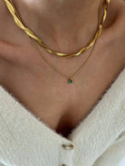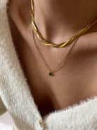 Verleihen Sie Ihrem Look einen glamourösen Glanz mit dieser 18 Karat vergoldeten, doppellagigen Schlangenknochenkette! Die einzigartigen Ringe und das gedrehte Strickdesign werden alle Blicke auf sich ziehen, und der doppellagige Look verleiht all Ihren Outfits einen luxuriösen Touch. Fügen Sie es Ihrer Sammlung hinzu - Sie werden es nicht bereuen!