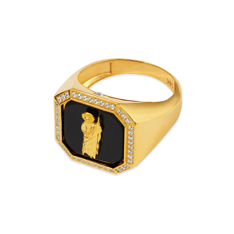 Rise above the ordinary with this 925 silver ring featuring a bold square design and shimmering CZ diamonds. Embrace risk, challenge convention, and let San Judas guide you to success.