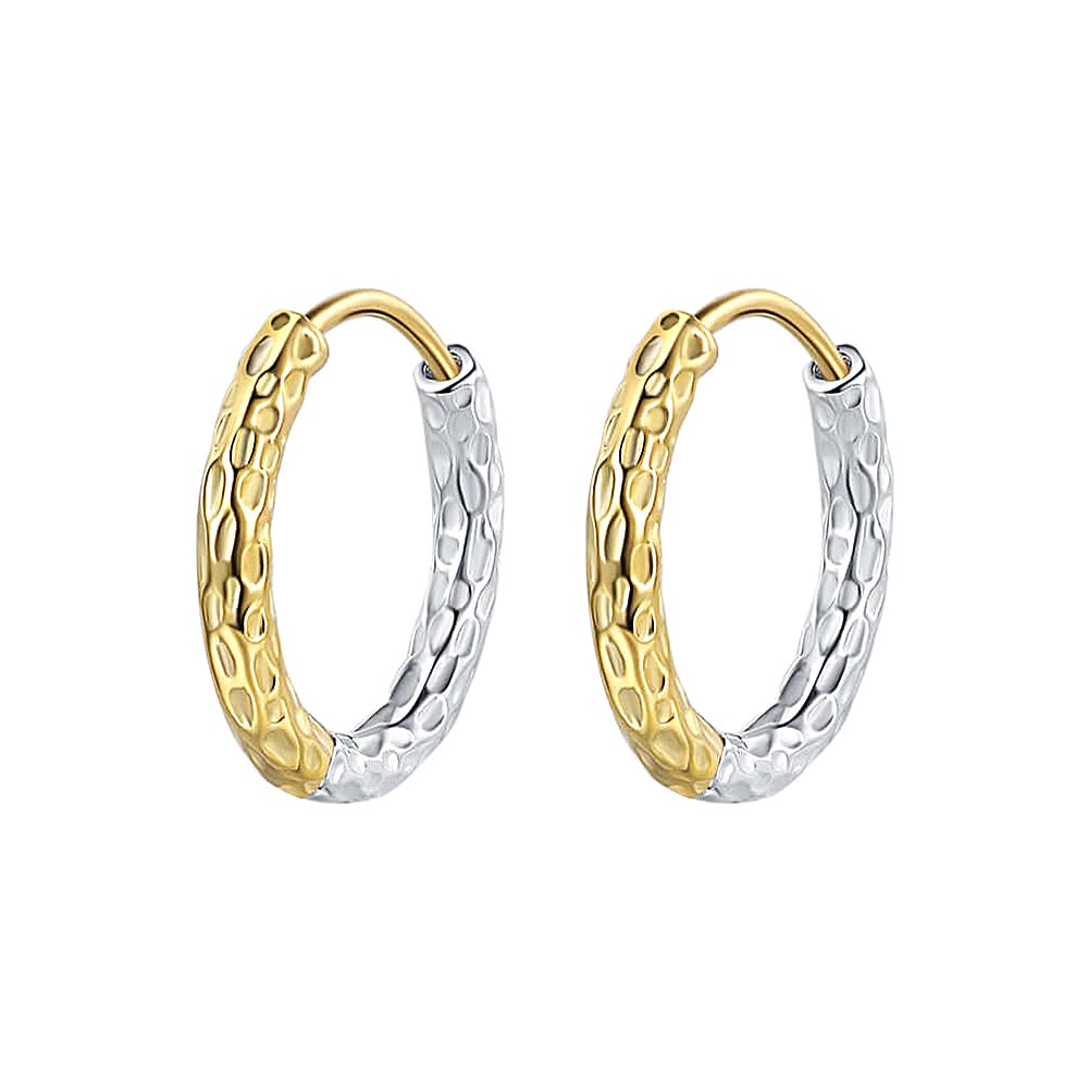 925 Silver Gold and Silver Contrast Simple Round Huggie Earring