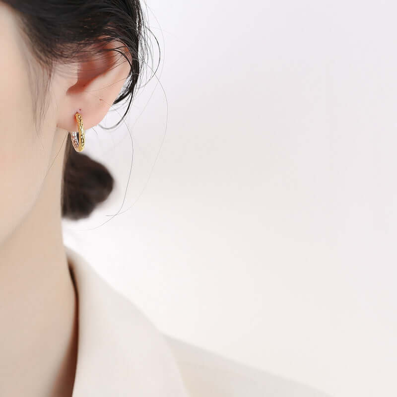 Embrace the boldness of these 925 Silver Gold and Silver Contrast Simple Round Huggie Earrings! Take on any challenge and add a touch of adventure to your style with their unique design. Made with high-quality materials, these earrings are sure to elevate your look and make a statement.