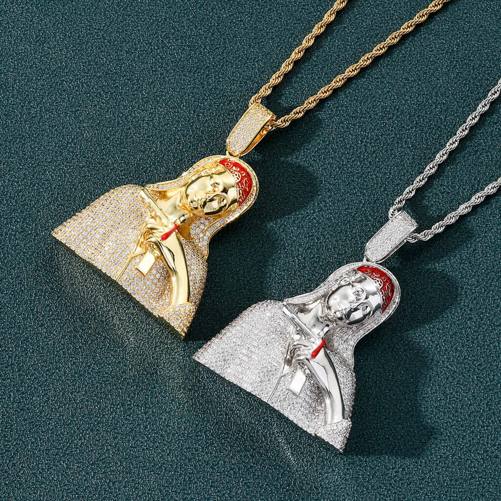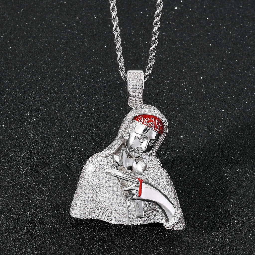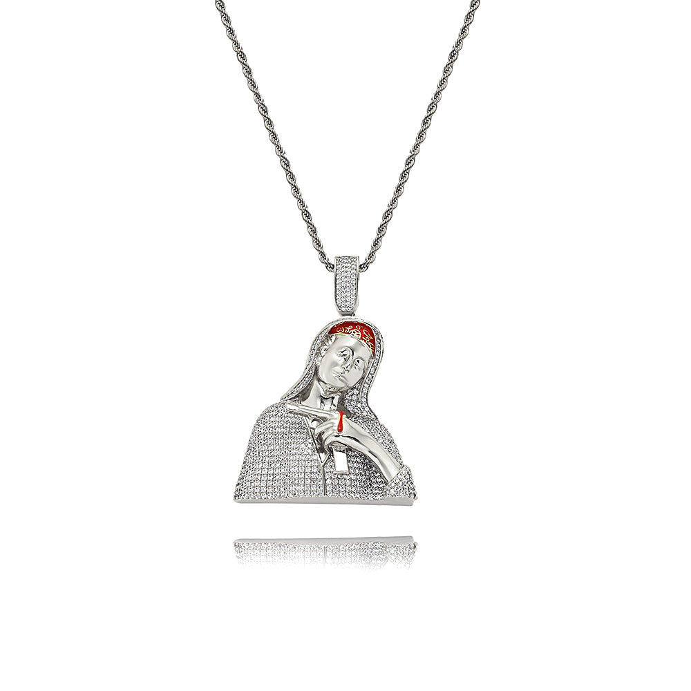 Hip Hop Zirconia Virgin Pistol Bloody Virgin Mary Virgencita Necklace