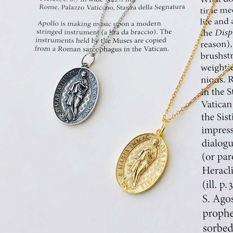 Die Halskette Jungfrau Maria Virgen cita wird mit schöner Liebe zum Detail angezeigt. Der Anhänger hat eine wunderschön gestaltete Textur, die das Bild zur Geltung bringt und alles hat, was Sie sich von einer Virgin Mary Virgencita Halskette wünschen. Geben Sie ein Statement ab und zeigen Sie Ihre Hingabe mit dieser Virgen cita Halskette! Es ist ein tolles Geschenk und ein persönliches Andenken.
