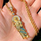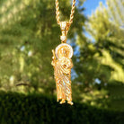 Gold Ice Finish Cubic Zirconia San Judas Pendant Necklace
