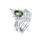 925 plata esterlina corona verde musgo ágata anillo de compromiso