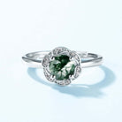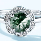 S925 Anillo de compromiso de ágata musgo verde flor de plata