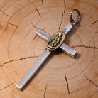 El collar de plata Virgen María Cruz Virgencita se exhibe con una hermosa atención al detalle. El colgante tiene una textura bellamente diseñada que hace que la imagen salga y tiene todo lo que desearías en un collar de Virgen María Virgencita. M ¡Hacer una declaración y mostrar su devoción con este collar virgencita! Es un gran regalo y un recuerdo personal.
