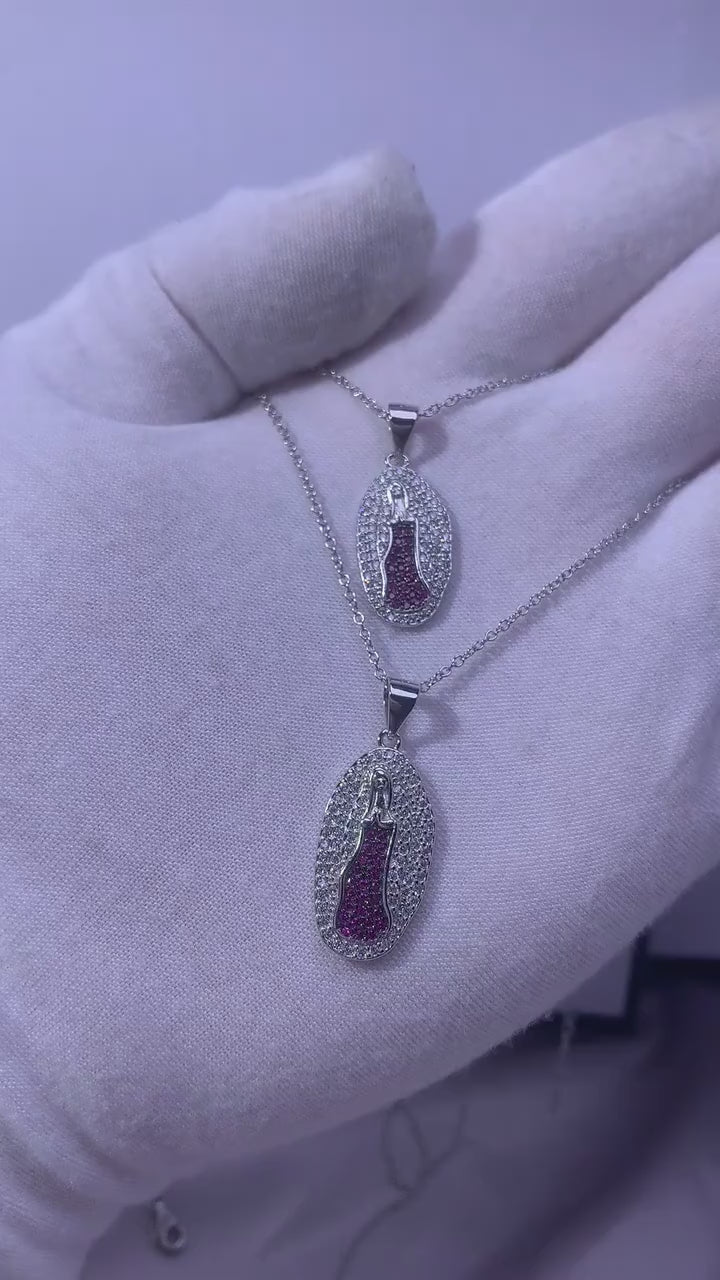 Sterling Silver Pink Colored Diamonds Virgin Mary Virgencita Necklace