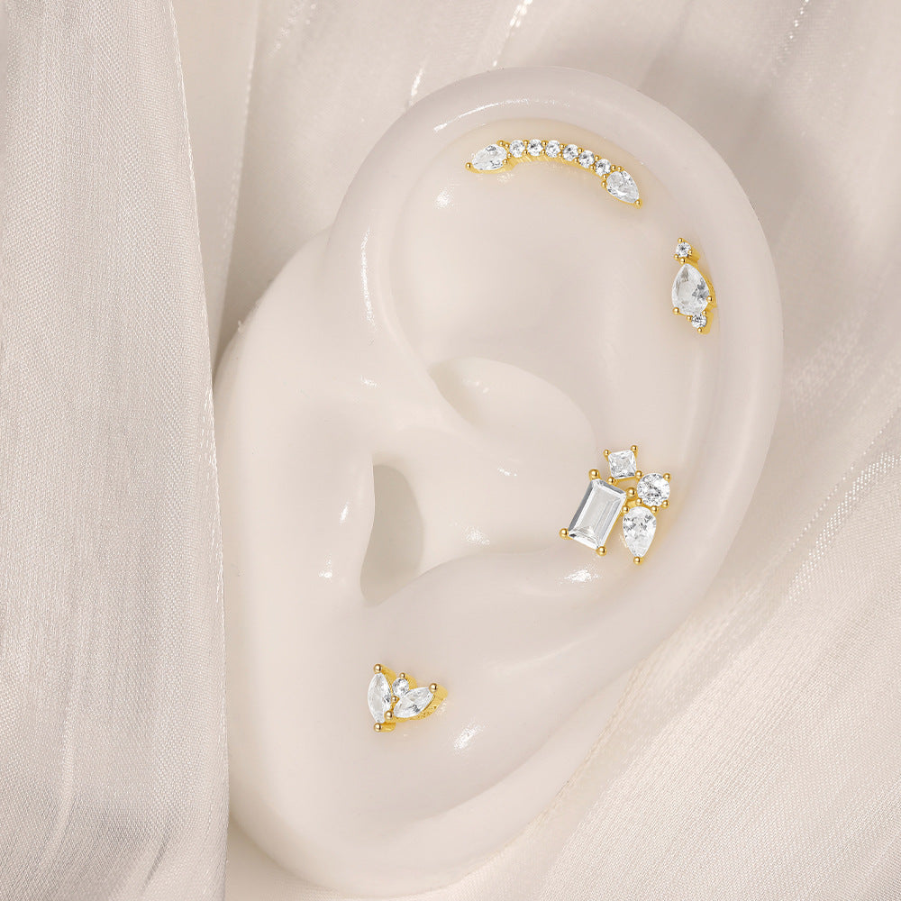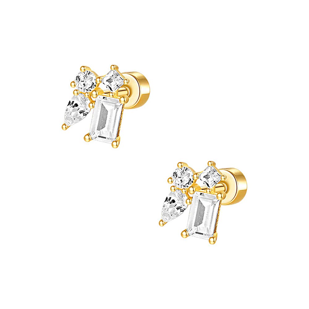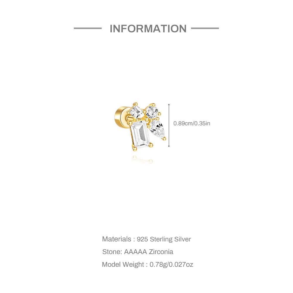 925 Silver Four CZ Diamond Flat Back Earrings