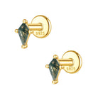 925 Silver Natural Quadrangular Moss Agate Flat Back Earrings