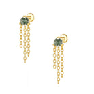 925 Silver Natural Three Tassel Moss Agate Flat Back Earrings