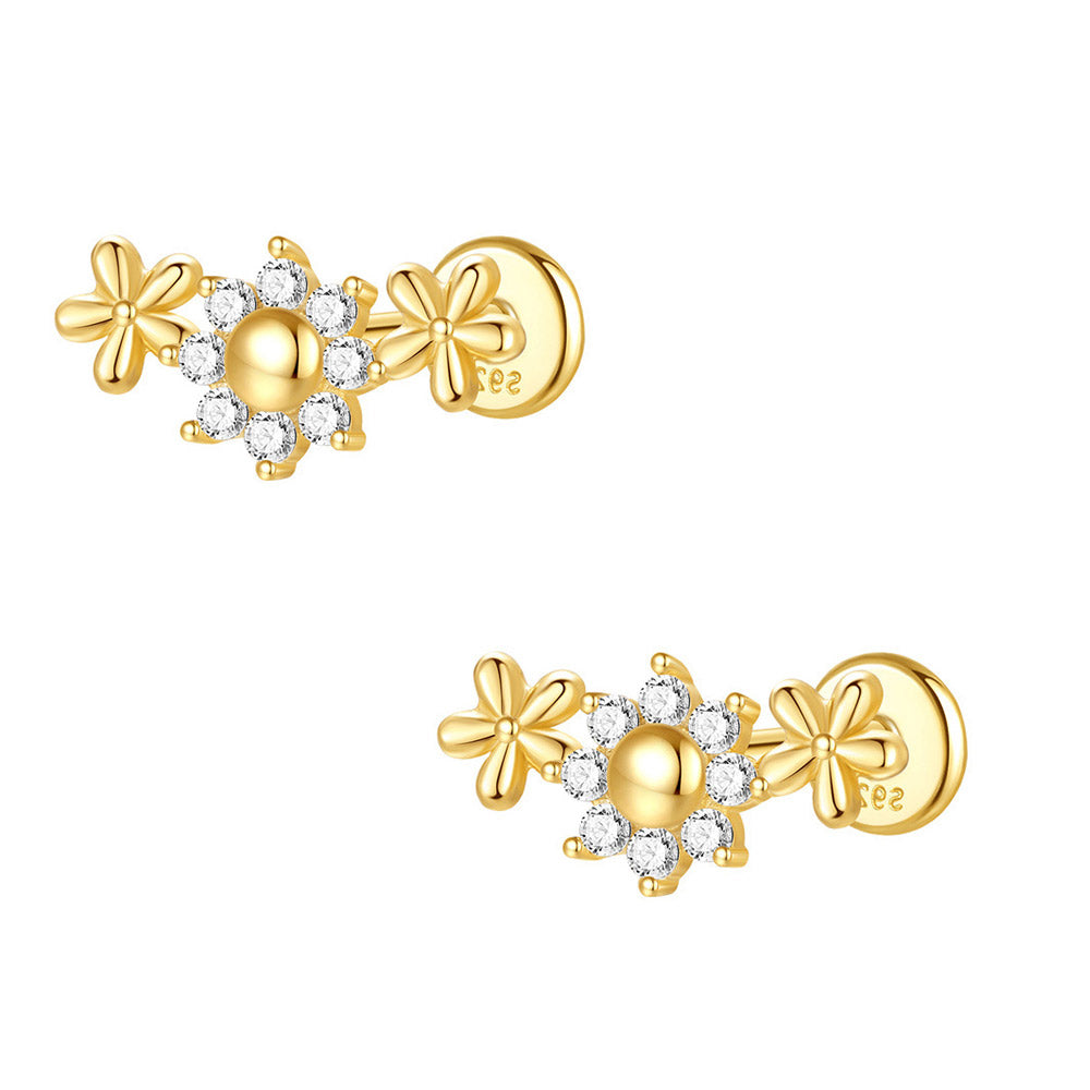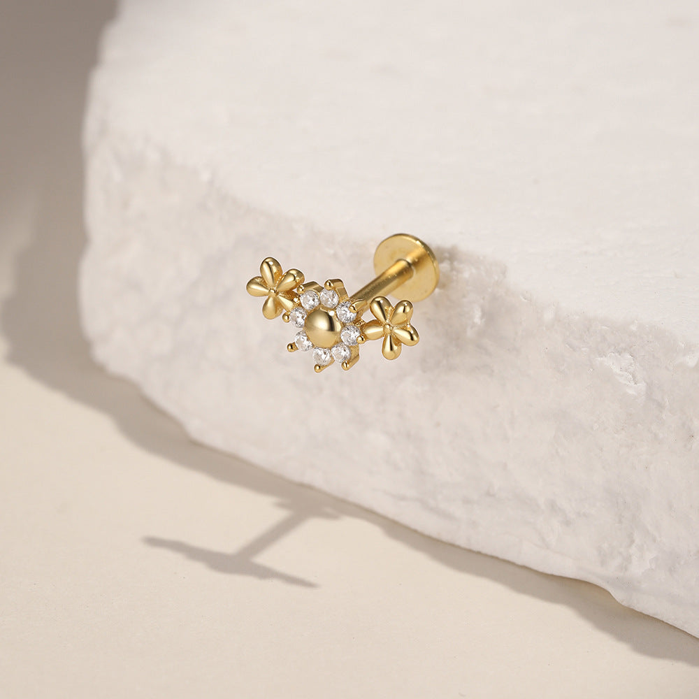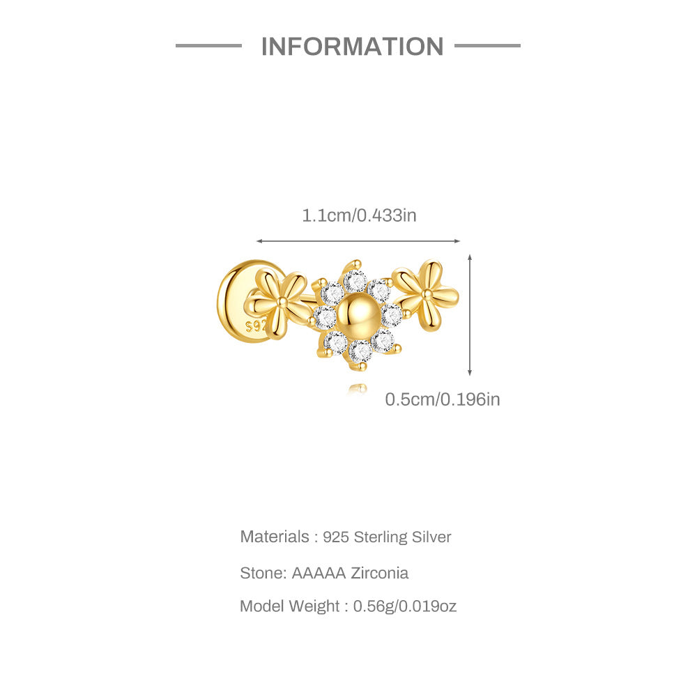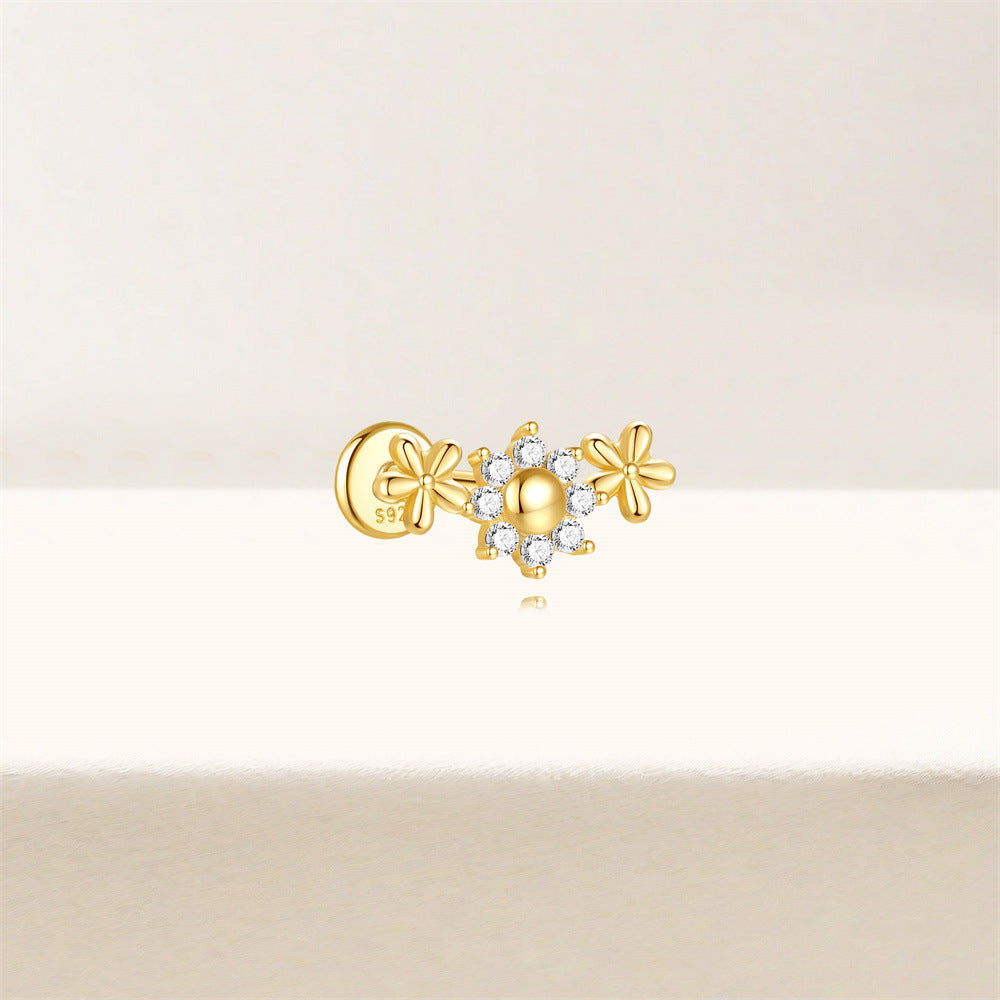 Crafted with 925 silver, these Three Flower Flat Back Earrings are not only elegant but also hypoallergenic. Perfect for those with sensitive ears, they offer a stylish addition to any outfit. Their flat back design ensures comfort and secure wear throughout the day. Add a touch of sophistication to your look with these timeless earrings.