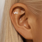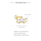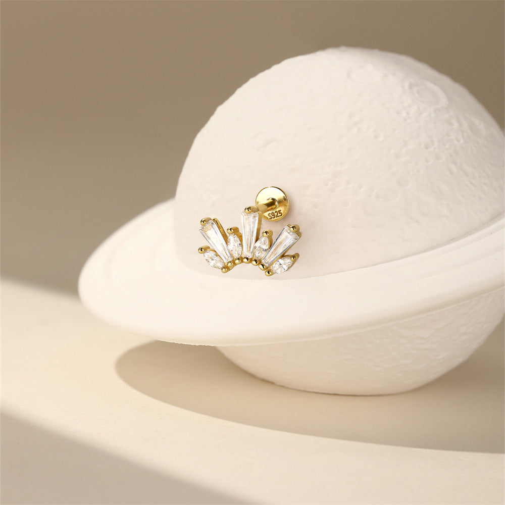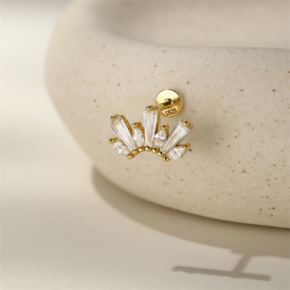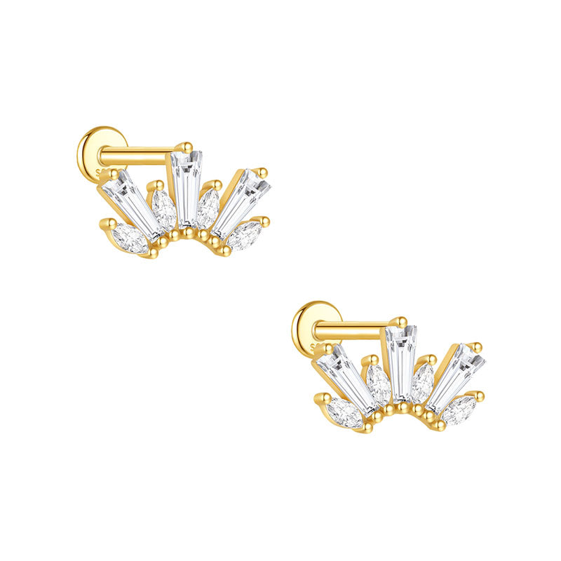 Dainty Fan - Shaped Zircon Flat Back Earrings - 925 Silver Gold Plated Cartilage Piercing Earring