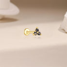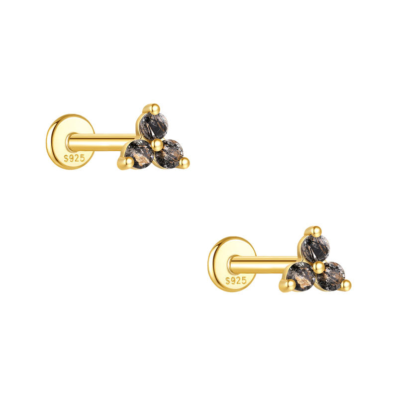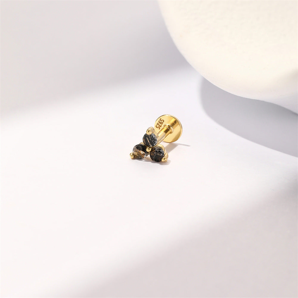 Triangle Three Stone Moss Agate Flat Back Earring S925 Gold Plated Sterling Silver Delicate Cartilage Lobe Jewelry