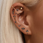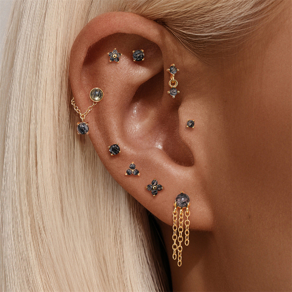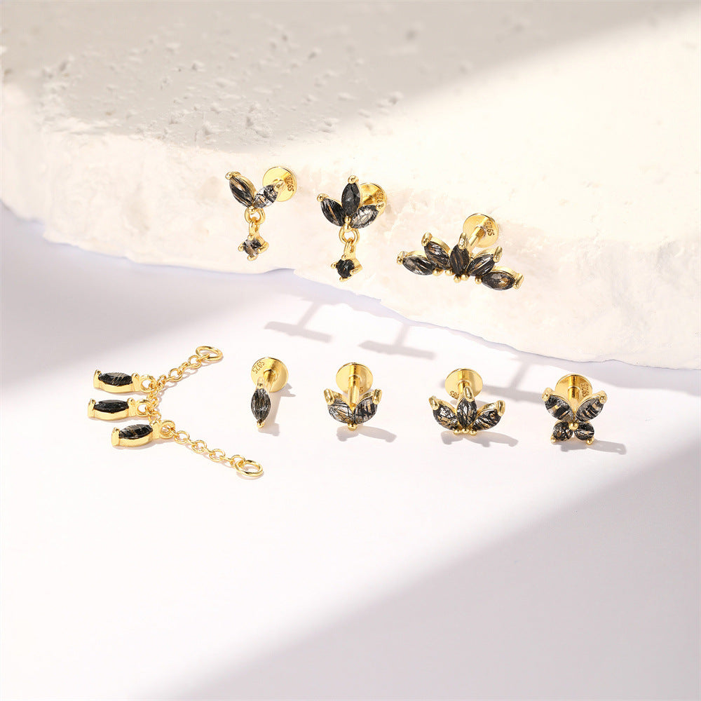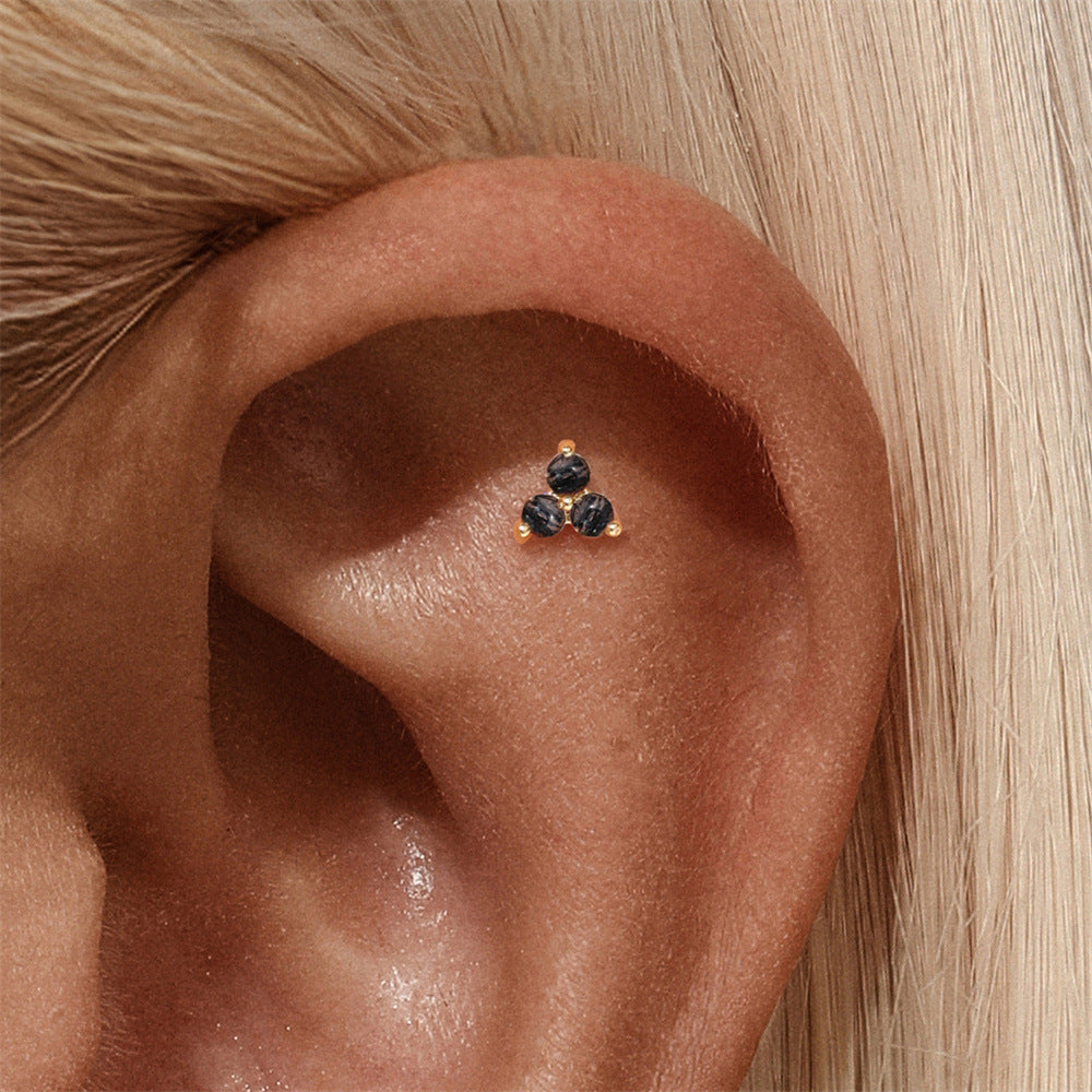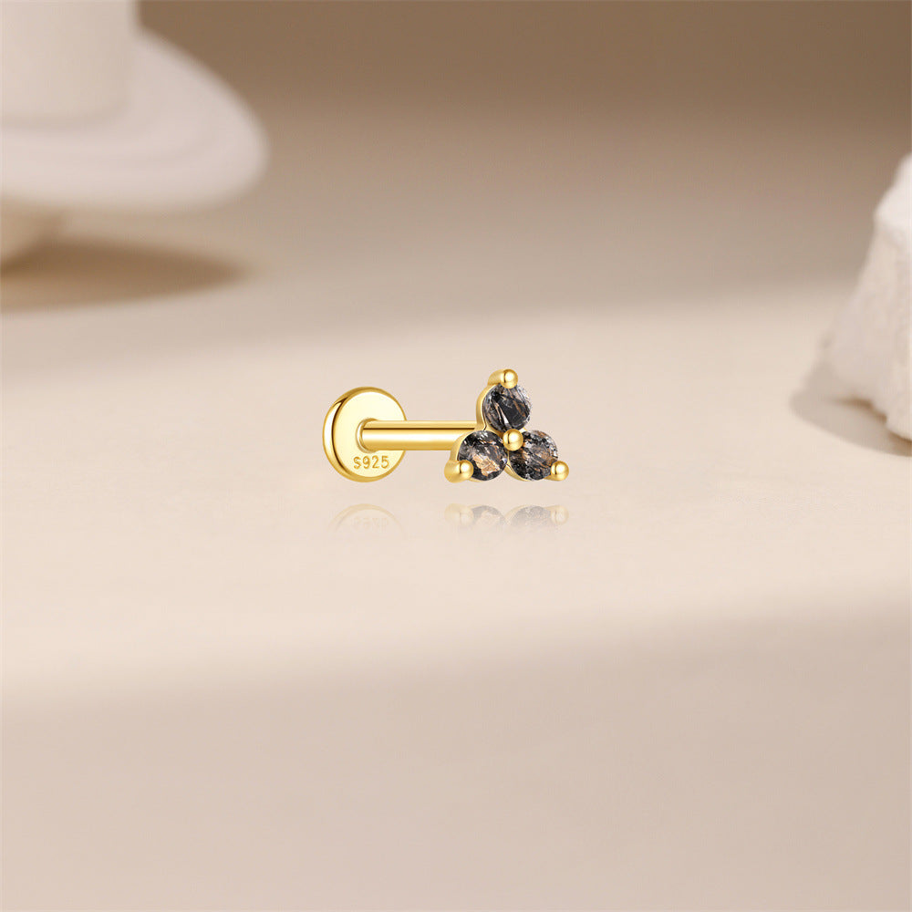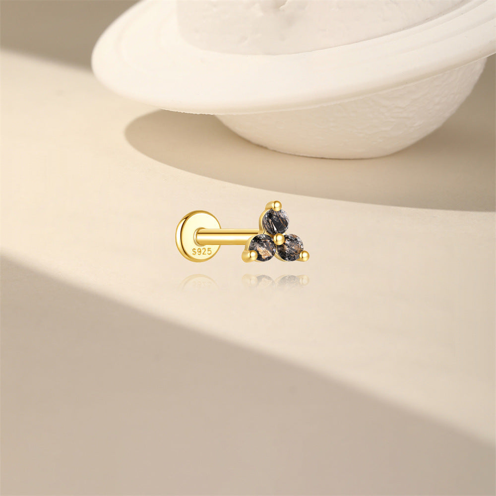 Elevate your ear styling with this sophisticated triangle earring featuring three captivating moss agate stones. Crafted from S925 sterling silver with luxurious gold plating, this piece combines durability with refined aesthetics. The flat back design ensures comfortable all-day wear, making it ideal for cartilage, lobe, or delicate piercings. Moss agate's natural green patterns add organic beauty and a touch of earthy elegance to any look. Perfect for those seeking understated luxury with meaningful gemstone appeal.