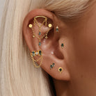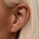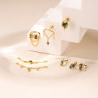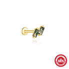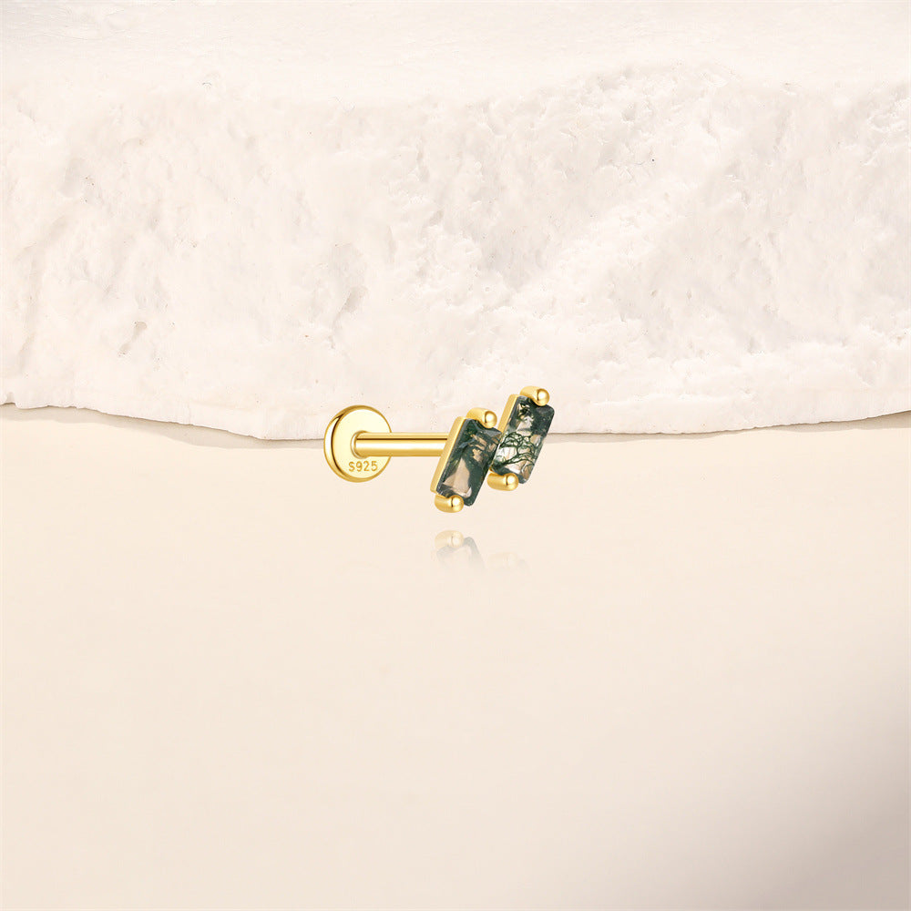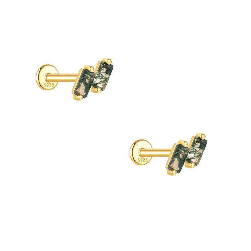 Minimalist Double Stone Moss Agate Flat Back Earrings S925 Gold Plated Sterling Silver Dainty Cartilage Earring