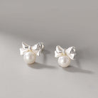925 Silver Bow Pearl Earrings