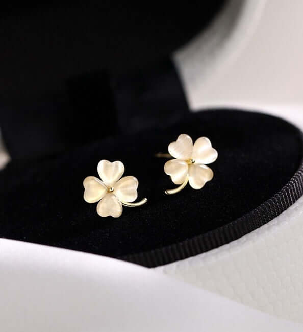 925 Silver Cat's Eye Four Leaf Clover Earrings